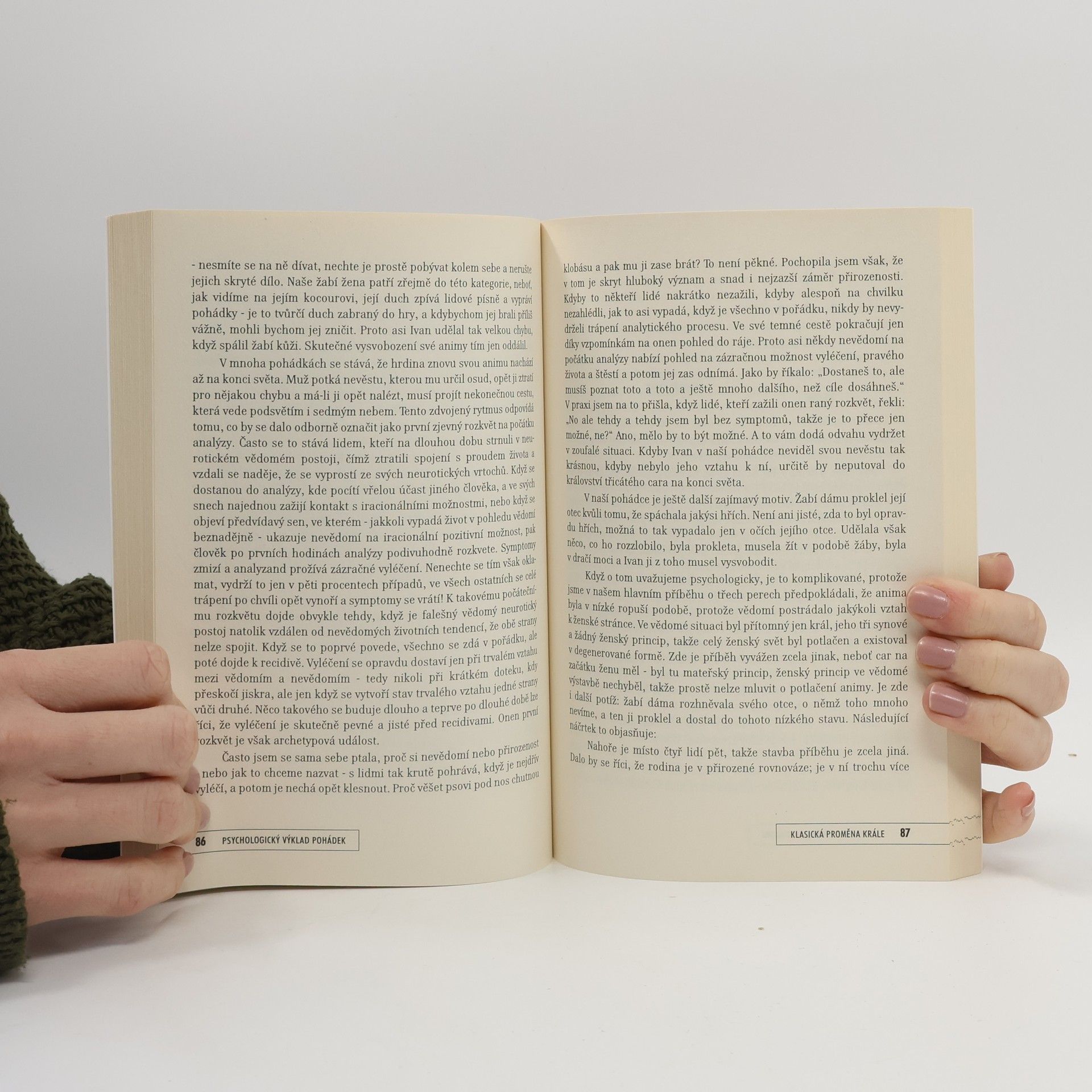 Podtitul: Smysl pohádkových vyprávění podle jungovské archetypové psychologie V pohádkových příbězích a v osudech jejich hrdinů je člověk po staletí v symbolické podobě konfrontován s obtížemi a nebezpečími, kterým je sám v životě vystaven. M. L. von Franz ve svém, dnes již klasickém díle, interpretuje pohádková vyprávění na základě jednotlivých archetypů hlubinné psychologie a odkrývá tak v příbězích jejich uzdravující a stabilizační roli pro životní cestu člověka. Jednotlivé pojmy psychologie C. G. Junga, jež jsou pro pochopení pohádek důležité, jsou názorně vysvětleny na řadě pohádkových příběhů. Kniha vznikla z přednášek, které měla autorka v sedmdesátých letech na Institutu C. G. Junga v Curychu. 4. vydání