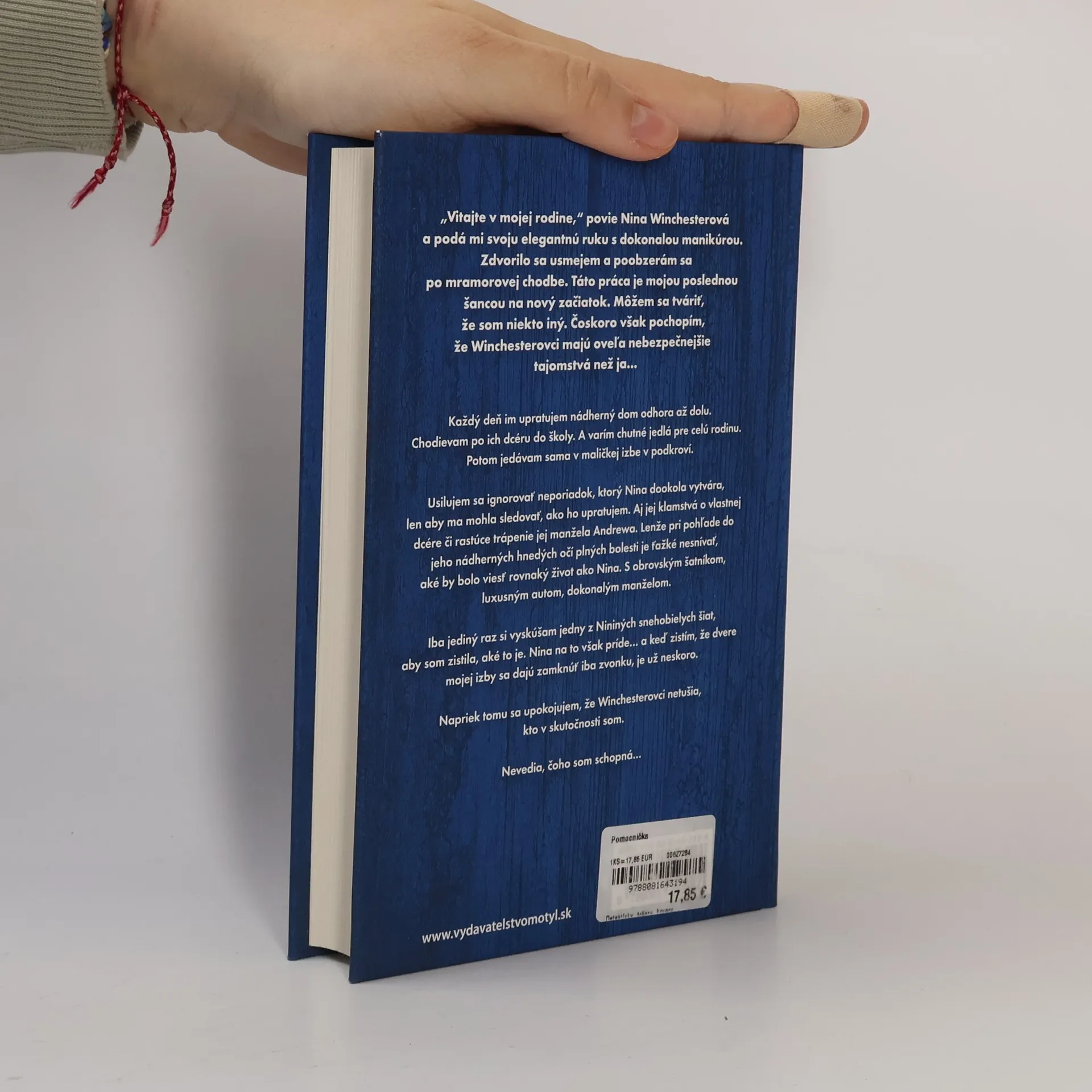 "Vitajte v mojej rodine," povie Nina Winchesterová a podá mi svoju elegantnú ruku s dokonalou manikúrou. Zdvorilo sa usmejem a poobzerám sa po mramorovej chodbe. Táto práca je mojou poslednou šancou na nový začiatok. Môžem sa tváriť, že som niekto iný. Čoskoro však pochopím, že Winchesterovci majú oveľa nebezpečnejšie tajomstvá než ja...Každý deň im upratujem nádherný dom odhora až dolu. Chodievam po ich dcéru do školy. A varím chutné jedlá pre celú rodinu. Potom jedávam sama v maličkej izbe v podkroví.Usilujem sa ignorovať neporiadok, ktorý Nina dookola vytvára, len aby ma mohla sledovať, ako ho upratujem. Aj jej klamstvá o vlastnej dcére či rastúce trápenie jej manžela Andrewa. Lenže pri pohľade do jeho nádherných hnedých očí plných bolesti je ťažké nesnívať, aké by bolo viesť rovnaký život ako Nina. S obrovským šatníkom, luxusným autom, dokonalým manželom.Iba jediný raz si vyskúšam jedny z Nininých snehobielych šiat, aby som zistila, aké to je. Nina na to však príde...a keď zistím, že dvere mojej izby sa dajú zamknúť iba zvonku, je už neskoro.Napriek tomu sa upokojujem, že Winchesterovci netušia, kto v skutočnosti som.Nevedia, čoho som schopná...