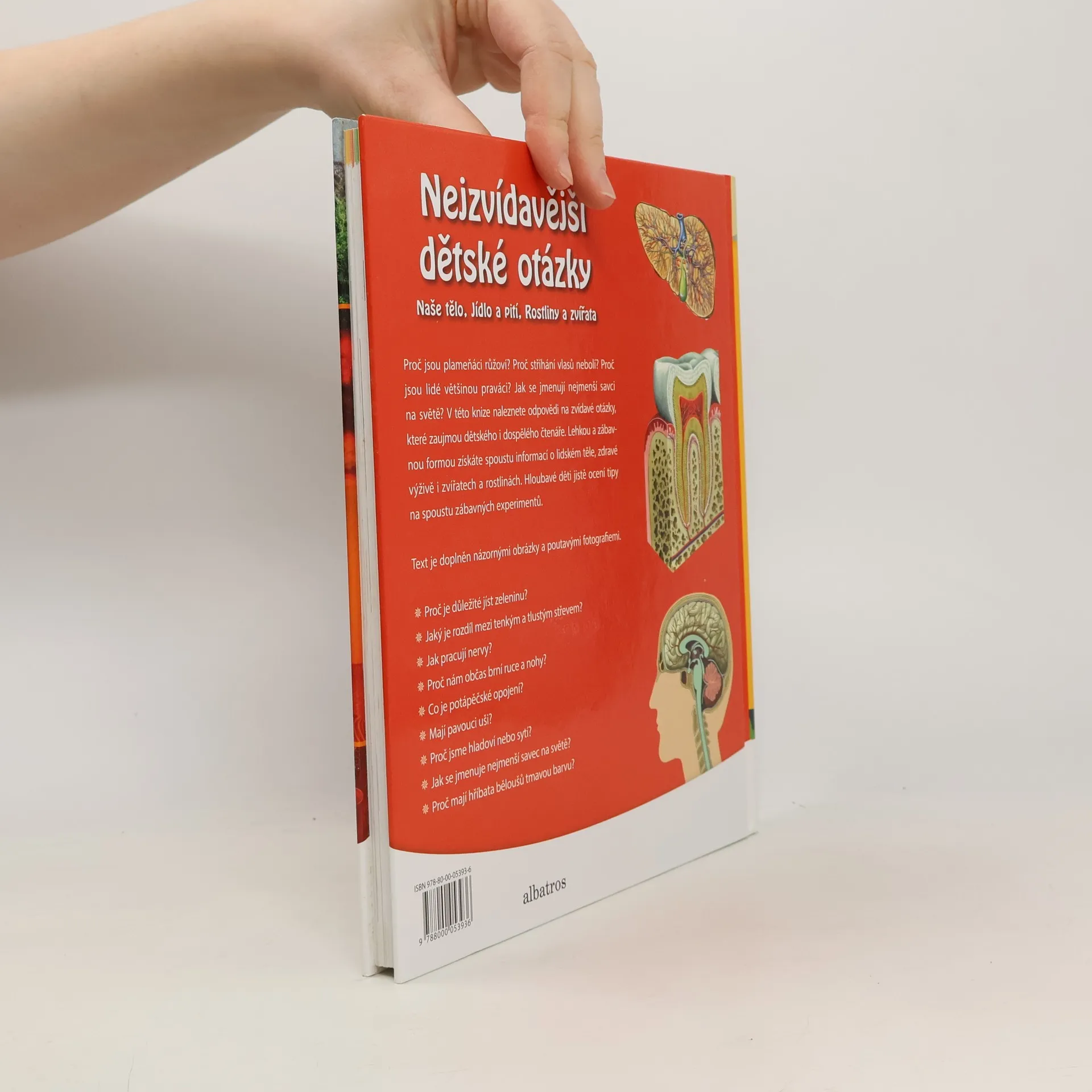 Proč jsou plameňáci růžoví? Proč stříhání vlasů nebolí? Proč jsou lidé většinou praváci? Jak se jmenují nejmenší savci na světě? V této knize naleznete odpovědi na zvídavé otázky, které zaujmou dětského i dospělého čtenáře. Lehkou a zábavnou formou získáte spoustu informací o lidském těle, zdravé výživě a zvířatech a rostlinách. Děti jistě ocení i tipy na spoustu zábavných experimentů