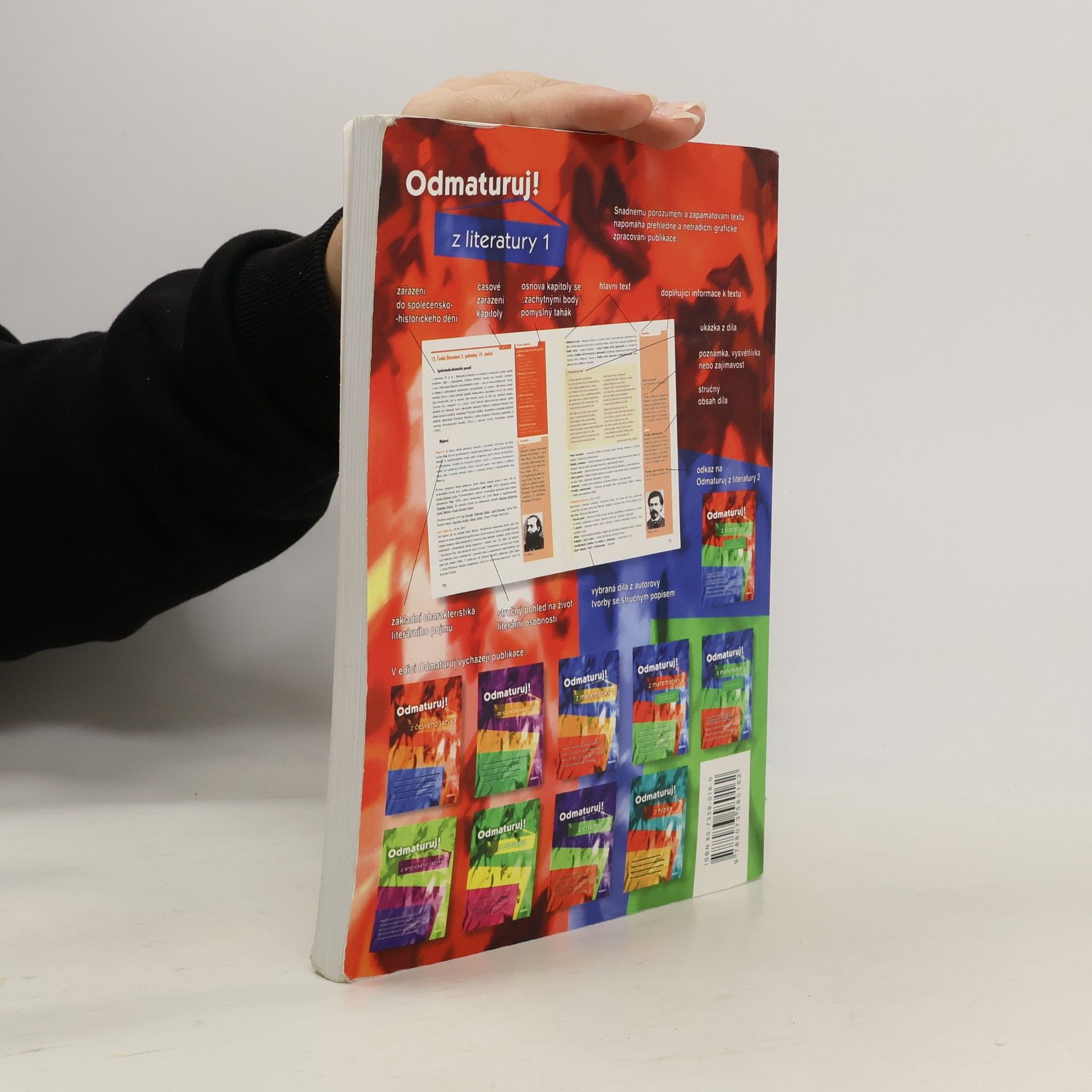 Poutavá učebnice určená k přípravě na maturitu (i k nové podobě maturity) a k přijímacím zkouškám na vysoké školy. Obsahuje celou středoškolskou látku literatury i teorie literatury. Kniha je přehledně zpracována do 22 kapitol, které jsou dále členěny na menší podkapitoly. Snadnou orientaci v textu podporuje grafické odlišení ústředního textu od doplňujících poznámek a zajímavostí. Knížka je doplněna portréty literárních osobností, ukázkami z děl, obsahy děl, společensko-historickým pozadím doby. Určeno studentům všech středních škol během celého středoškolského studia, jejich učitelům a ostatním zájemcům o studium literatury. Rok 2004, ISBN: 80-7358-016-0, vydání třetí, rozšířené.