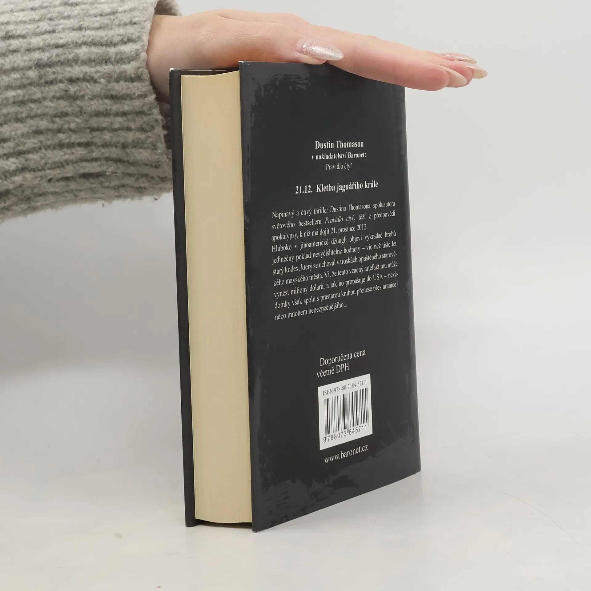 Napínavý a čtivý thriller Dustina Thomasona, autora světového bestselleru Pravidlo čtyř, těží z předpovědí apokalypsy, k níž má dojít 21. prosince 2012. Hluboko v jihoamerické džungli objeví domorodec jedinečný poklad nevyčíslitelné hodnoty – víc než tisíc let starý kodex, který se uchoval v troskách opuštěného starověkého mayského města. Lupič ví, že tento vzácný artefakt mu může vynést milióny dolarů, a tak ho propašuje do USA – nevědomky však spolu s prastarou knihou přenese přes hranice i něco mnohem nebezpečnějšího… V prvních prosincových dnech roku 2012 se vzácný kodex ocitne v rukou Chel Manu, světoznámé odbornice na staré mayské rukopisy. Je na vážkách, zda má nález ohlásit policii anebo využít životní příležitosti a kodex sama přeložit. Mezitím se v Los Angeles začne šířit vzácná a dosud neznámá, ale vysoce nakažlivá neurologická nemoc, smrtící insomnie. Zdá se, že světu skutečně hrozí předpovídaná apokalypsa – a že opravdu souvisí se světem starých Mayů víc, než by kdo tušil… Nastane zkáza lidstva? Je dešifrování tajemného kodexu jediná naděje, jak přežít? Zvítězí vědci v boji s časem?