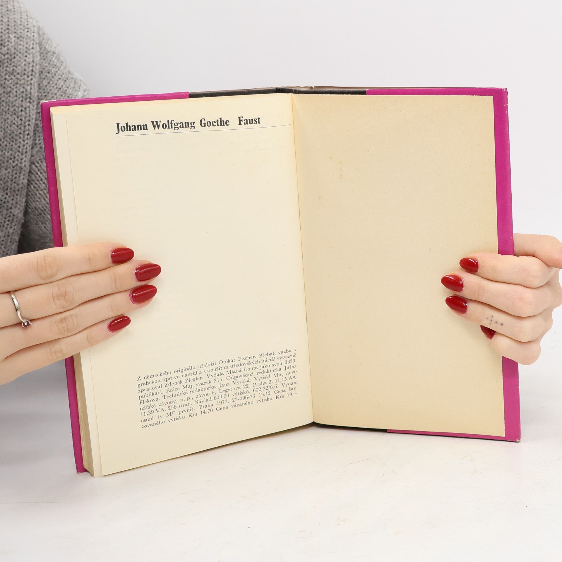 Faust. 1. díl, Tragédie. Jedno z největších děl světové literatury ve skvělém, dnes již klasickém překladu vynikajícího českého překladatele, literárního historika a básníka Otokara Fischera. Goethův Faust ztělesňuje drama základních otázek, s nimiž život člověka konfrontuje od nejstarších dob do současnosti: hledání smyslu existence, touhy po lásce a poznání a především po tom, co přesahuje lidskou smrtelnost. 23-096-73