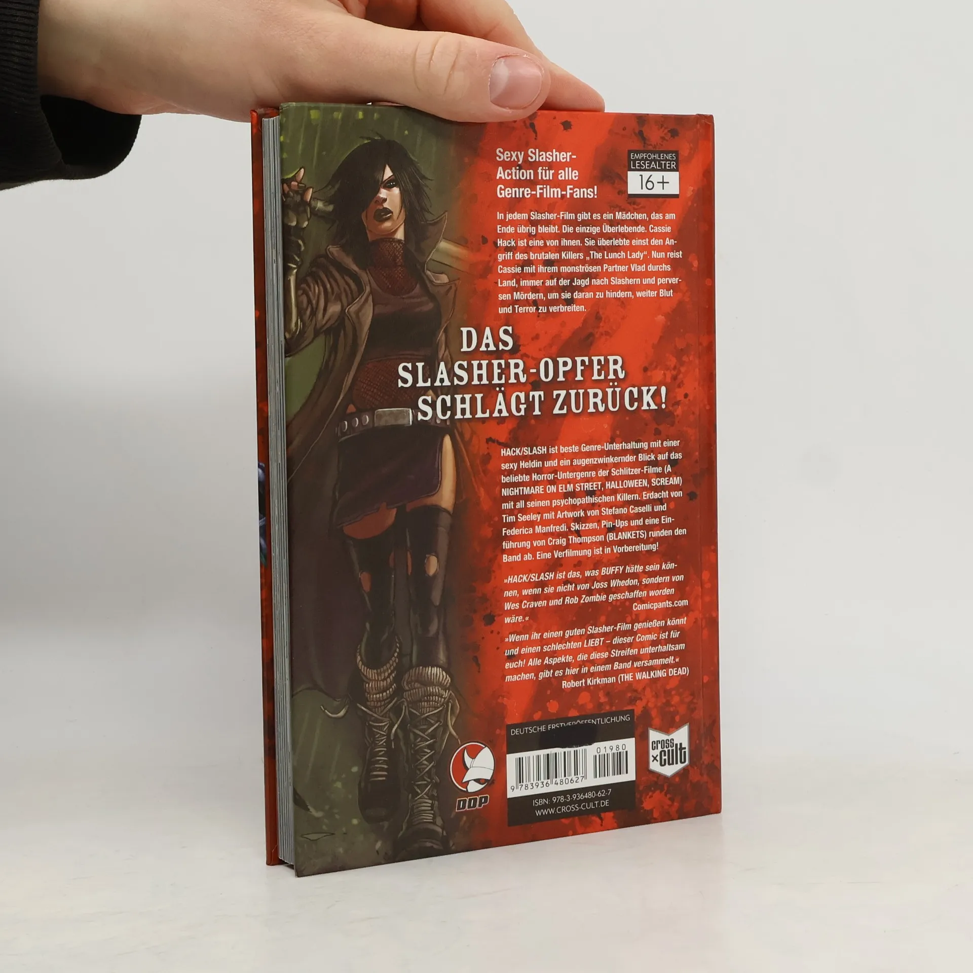 Sexy-Slasher-Action für alle Genre-Film-Fans! In jedem Slasher-Film gibt es ein Mädchen, dass am Ende übrig bleibt. Die einzige Überlebende. Cassie Hack ist eine von ihnen. Sie überlebte einst den Angriff des brutalen Killers „The Lunch Lady“. Nun reist Cassie mit ihrem monströsen Partner, Vlad, durchs Land, immer auf der Jagd nach Slashern und perversen Mördern, um sie daran zu hindern, weiter Blut und Terror zu verbreiten. HACK/SLASH ist beste Genre-Unterhaltung mit einer sexy Heldin und ein augenzwinkernder Blick auf das beliebte Horror-Untergenre der Schlitzer-Filme (A Nightmare on Elm Street, Halloween, Scream) mit all seinen psychopathischen Killern. Erdacht wurde die Serie von Tim Seeley (Zeichner von Dungeons & Dragons bei Panini) mit Artwork von Stefano Caselli & Federica Manfredi. Der erste Band enthält zahlreiche Skizzen, Pin-Ups und eine Einführung von Craig Thompson (Blankets). Eine Verfilmung ist in Vorbereitung (Rogue/Universal)! Die deutsche Ausgabe enthält exklusiv einen Artikel