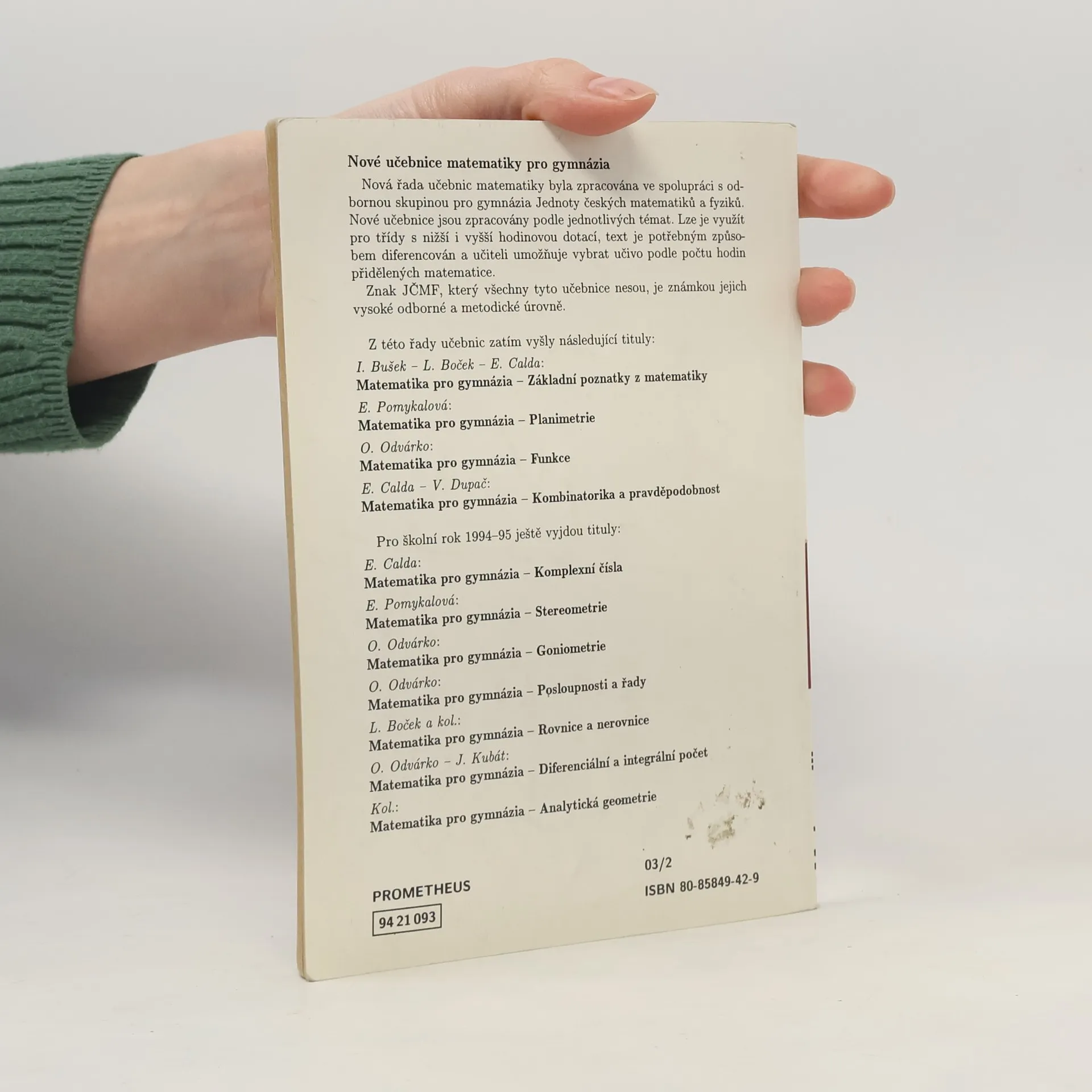 Další z řady monotematických učebnic matematiky pro gymnázia. Lze ji využít pro třídy s vyšší i nižší hodinovou dotací matematiky. Text je potřebným způsobem diferencován a učiteli umožňuje vybrat učivo podle počtu hodin přidělených matematice. Učebnice lze použít nejen na gymnáziích, ale také na středních odborných školách. Monotematická řada učebnic matematiky byla připravena ve spolupráci s odbornou skupinou pro gymnázia Jednoty českých matematiků a fyziků. Znak JČMF, který všechny tyto učebnice nesou, je známkou jejich vysoké odborné a metodické úrovně.