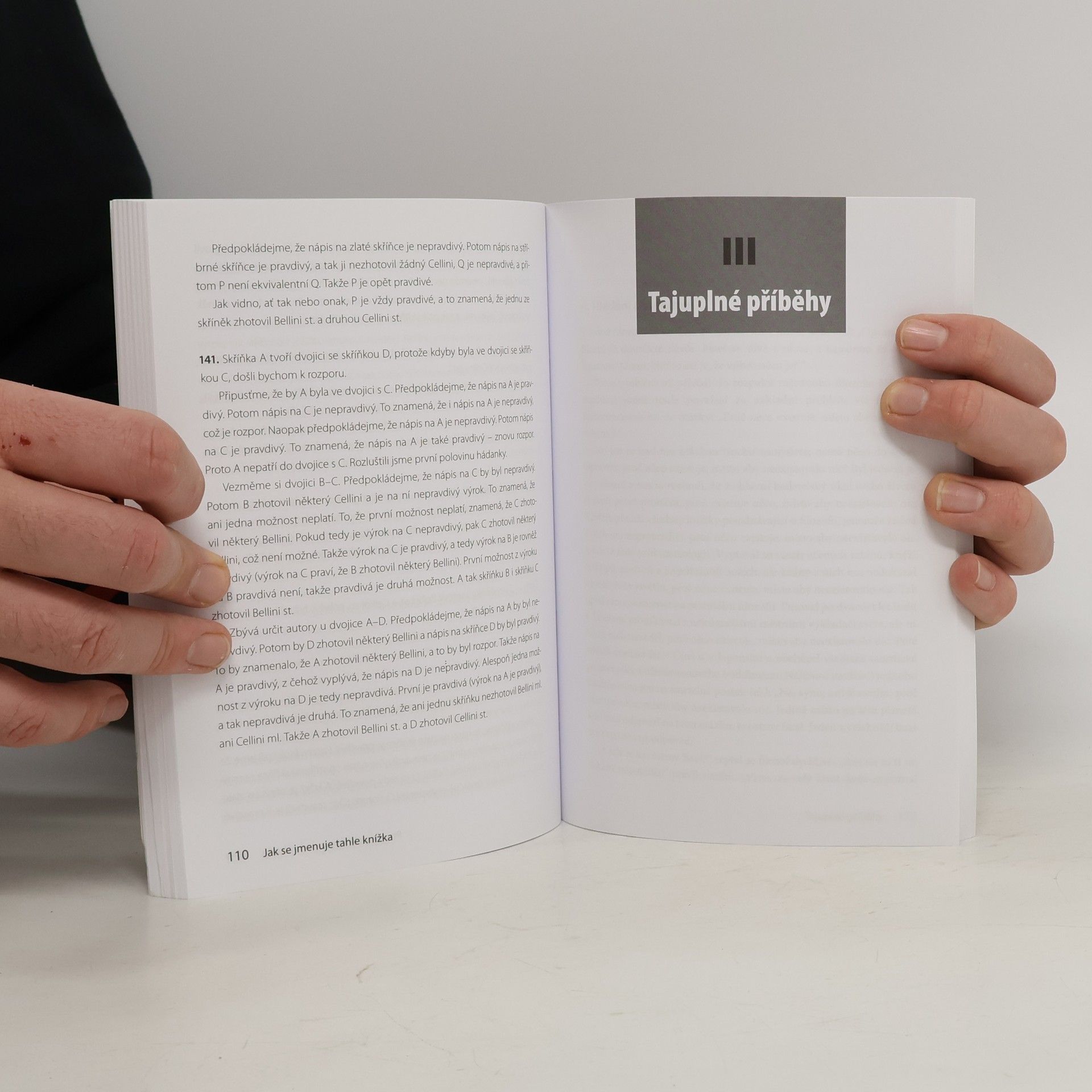 V novém, upraveném vydání vychází tato slavná kniha amerického matematika, v níž nás zve třeba na ostrovy poctivců a padouchů, do světa Alenky v říši divů a za zrcadlem a Shakespearova Benátského kupce, k inspektoru Fishtrawnovi ze Scotland Yardu, mezi vlkodlaky nebo za hrabětem Draculou. Autor nám představuje 271 hádanek, chytáků či logických paradoxů a pro kontrolu samozřejmě nabízí i jejich podrobná řešení. Hravou a vtipnou formou nás uvádí například do světa výrokové logiky a teorie množin včetně proslulého Gödelova principu. Úlohy jsou vhodné pro všechny milovníky záhad a logiky i pro ty, kdo se chtějí zdokonalit v řešení některých částí testů obecných studijních předpokladů.