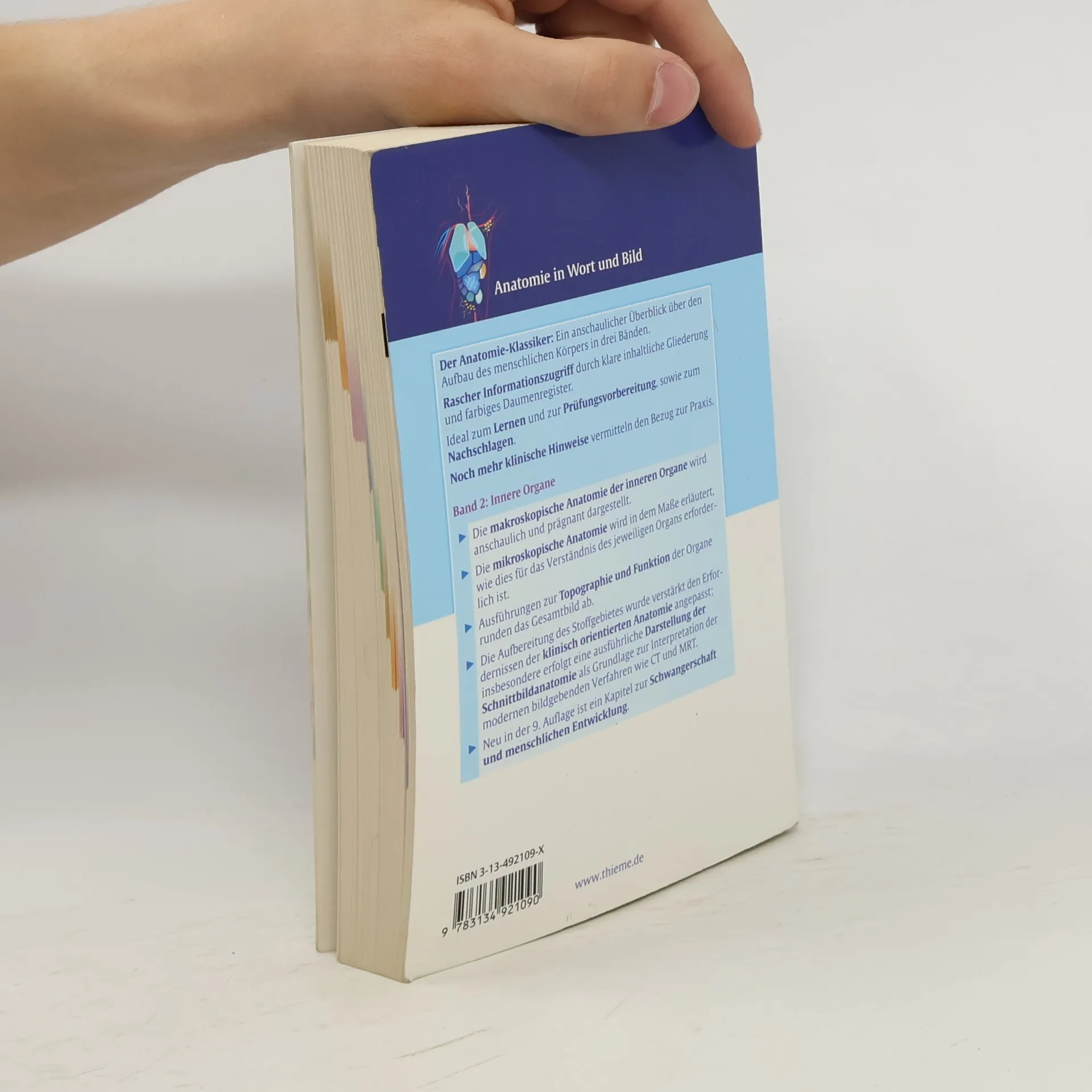 Gestalt, Lage, geweblicher Aufbau und Funtkion der Kreislauf-, Atmungs- und Verdauungsorgane, der Blut- und Abwehrsysteme, Drüsen und der Haut sind Gegenstand des zweiten Bandes. Der Beckenboden, der in enger funktioneller Beziehung zur den Organen des kleinen Beckens steht, wird einschließlich der damit zusammenhängenden Topographie dargestellt. Hinzu kommt die Darstellung der Zahnentwicklung und des Zahnhalteapparates, die Reifeteilung der Geschlechtszellen, die zellulären Vorgänge bei der Befruchtung und die Grundzüge der Plazentabildung.