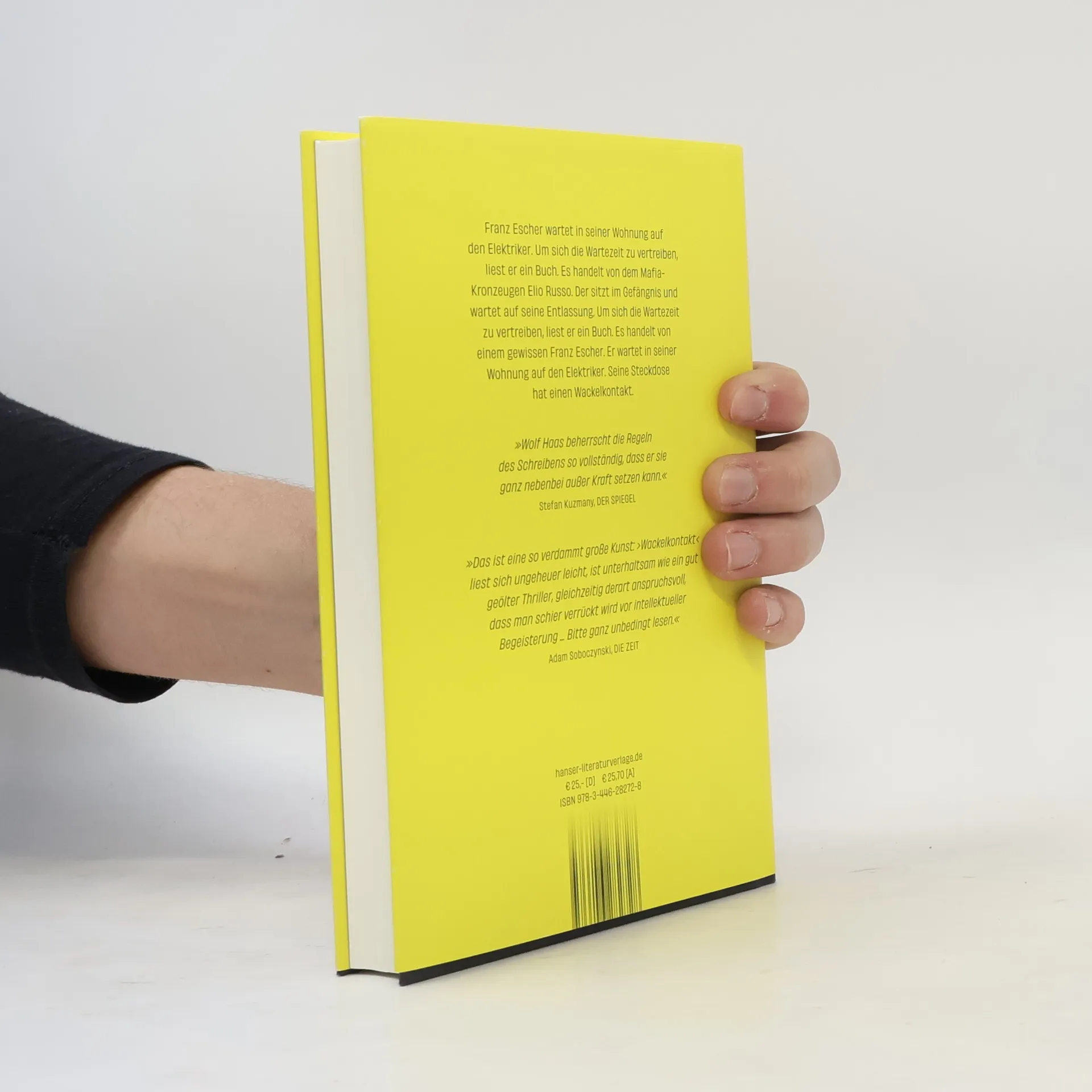 Funkenschlagend und spannend bis zum finalen Kurzschluss – »der neue Wolf Haas ist ein Wunder. Bitte ganz unbedingt lesen.« Adam Soboczynski, Die Zeit Franz Escher wartet auf den Elektriker. Seine Steckdose hat einen Wackelkontakt. Um sich die Zeit zu vertreiben, liest er ein Buch über den Mafia-Kronzeugen Elio Russo. Elio sitzt im Gefängnis und wartet auf die Entlassung. Er hat so viele Leute verraten, dass er um sein Leben fürchtet. Aus Angst liegt er nachts wach und liest ein Buch. Es handelt von Franz Escher. Der wartet auf den Elektriker. Seine Steckdose hat einen Wackelkontakt. Wolf Haas' neuer Roman zündet ein erzählerisches Feuerwerk: Was beginnt wie zwei halbwegs übersichtliche Lebensgeschichten, verwirbelt sich zu einem schwindelerregenden Tanz - mit einem toten Handwerker, familiären Verstrickungen und vielen ungelösten Geheimnissen, funkenschlagend und spannend bis zum finalen Kurzschluss.