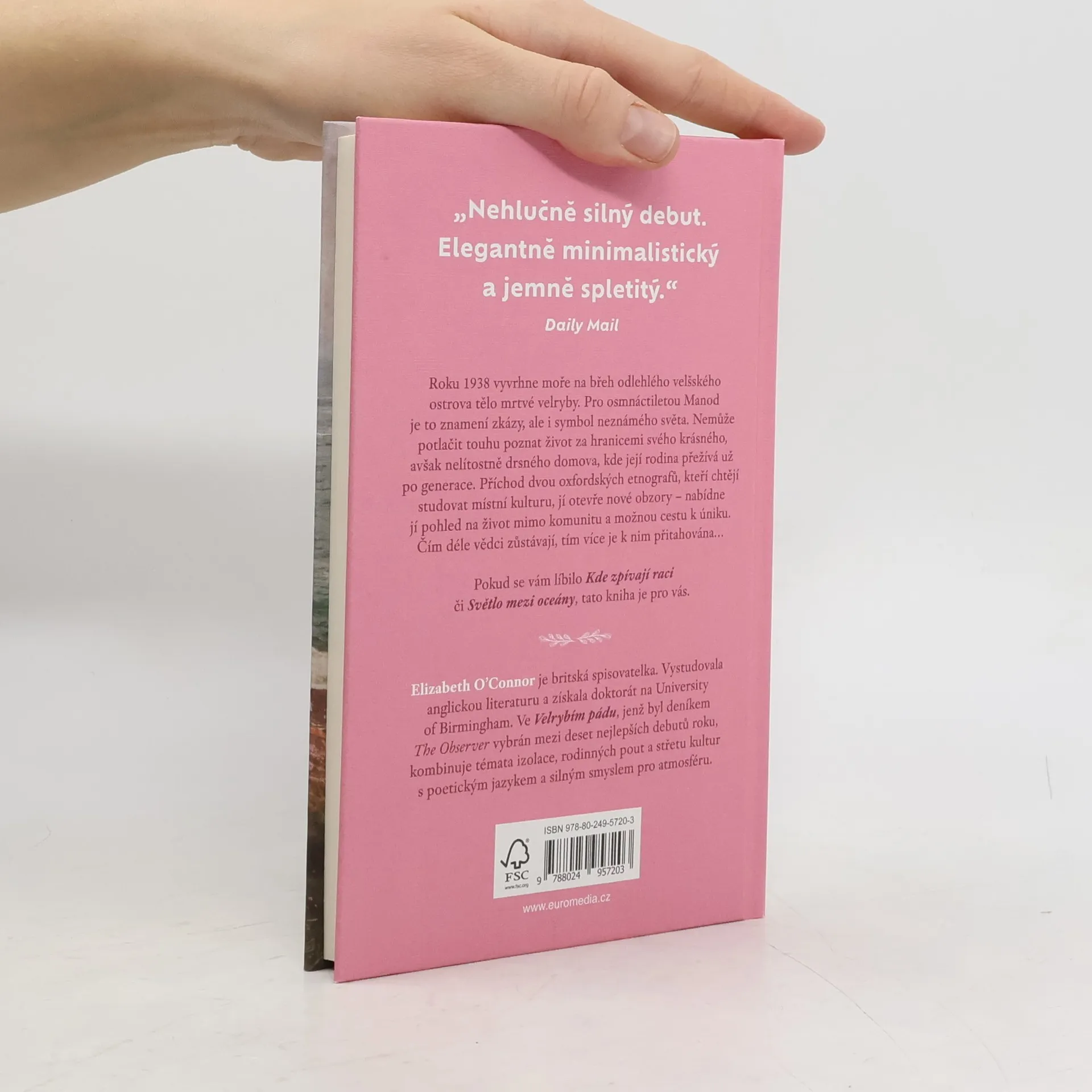 Roku 1938 vyvrhne moře mrtvou velrybu na břeh odlehlého velšského ostrova. Pro Manod, která zde žije celý život, je to znamení zkázy, ale i symbol neznámého světa. Nemůže potlačit touhu poznat život za hranicemi svého krásného, avšak nelítostně drsného ostrovního domova, kde její rodina přežívá už po generace. Příchod dvou anglických etnografů, kteří chtějí studovat místní kulturu, je pro ni darem – nabídne jí pohled na život mimo komunitu a možnou cestu k úniku. Čím déle etnografové zůstávají, tím více je k nim přitahována… Velrybí pád vypráví příběh o tom, co se stane, když ambice jednoho člověka ohrozí soudržnost komunity – a co může následovat, když jsou tyto ambice naplněny. Je o ženě na pokraji změny, nucené postavit se světu, který na ni stále více tlačí. Pokud se vám líbilo Kde zpívají raci, tato kniha je pro vás