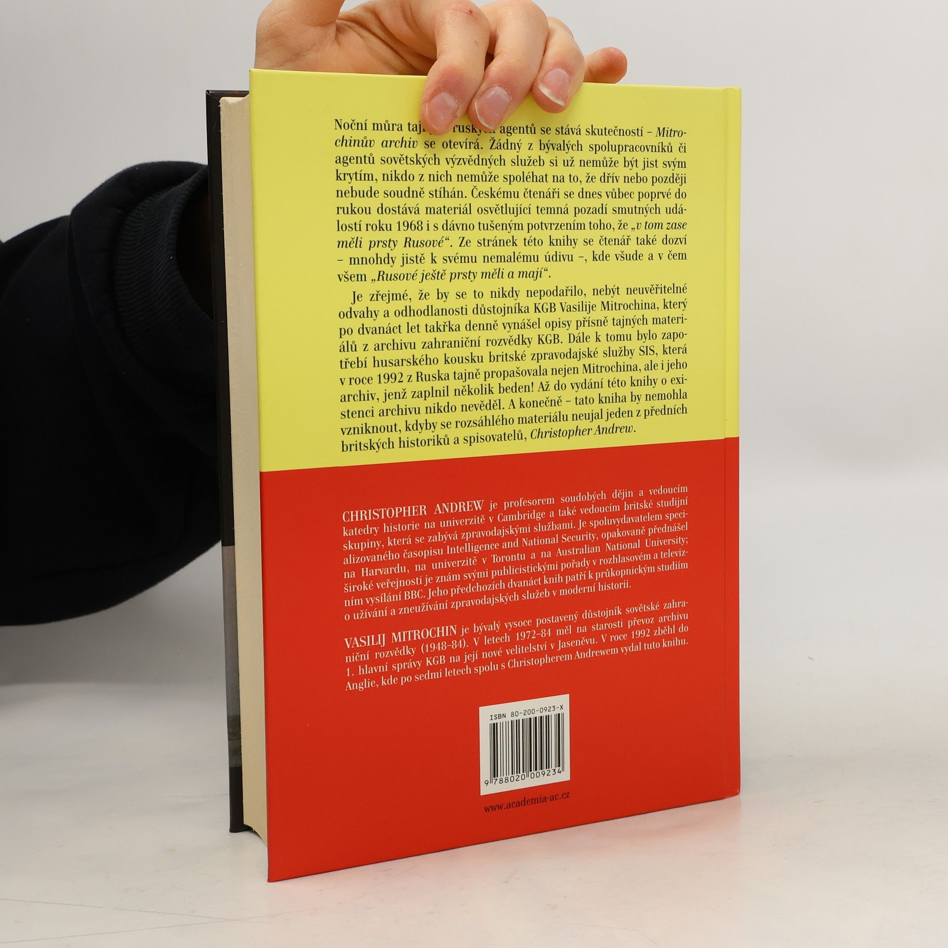 Druhé vydání. Noční můra tajných ruských agentů se stává skutečností – Mitrochinův archiv se otevírá. Žádný z bývalých spolupracovníků či agentů sovětských výzvědných služeb si už nemůže být jist svým krytím, nikdo z nich nemůže spoléhat na to, že dřív nebo později nebude soudně stíhán. Českému čtenáři se tak do rukou dostává materiál osvětlující temná pozadí smutných událostí roku 1968 i s dávno tušeným potvrzením toho, že „v tom zase měli prsty Rusové“. Ze stránek této knihy se čtenář také dozví – mnohdy jistě k svému nemalému údivu –, kde všude a v čem všem „Rusové ještě prsty měli a mají“. Je zřejmé, že by se to nikdy nepodařilo, nebýt neuvěřitelné odvahy a odhodlanosti důstojníka KGB Vasilije Mitrochina, který po dvanáct let takřka denně vynášel opisy přísně tajných materiálů z archivu zahraniční rozvědky KGB. Dále k tomu bylo zapotřebí husarského kousku britské zpravodajské služby SIS, která v roce 1992 z Ruska tajně propašovala nejen Mitrochina, ale i jeho archiv, jenž zaplnil několik beden! Až do vydání této knihy o existenci archivu nikdo nevěděl. A konečně – tato kniha by nemohla vzniknout, kdyby se rozsáhlého materiálu neujal jeden z předních britských historiků a spisovatelů, Christopher Andrew.