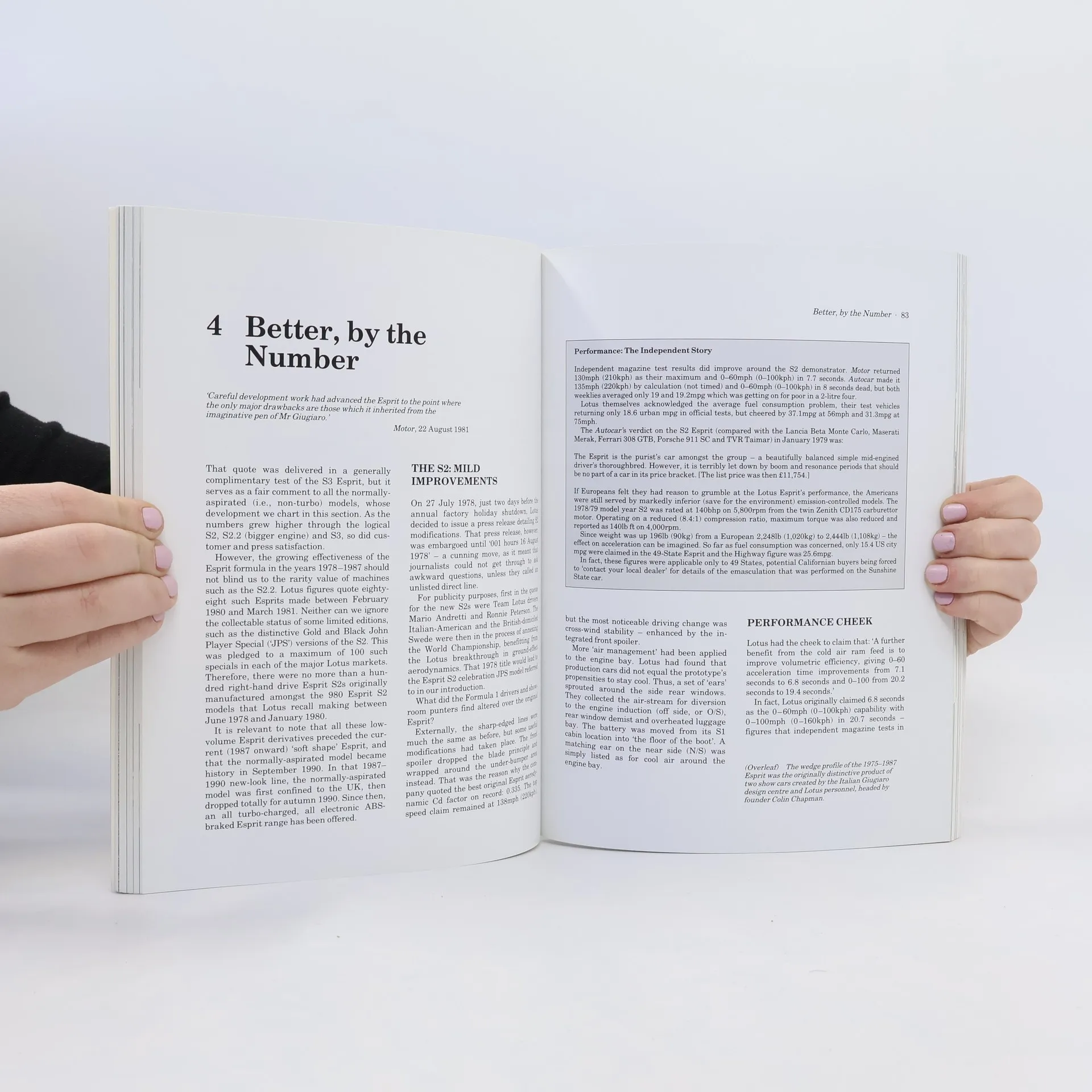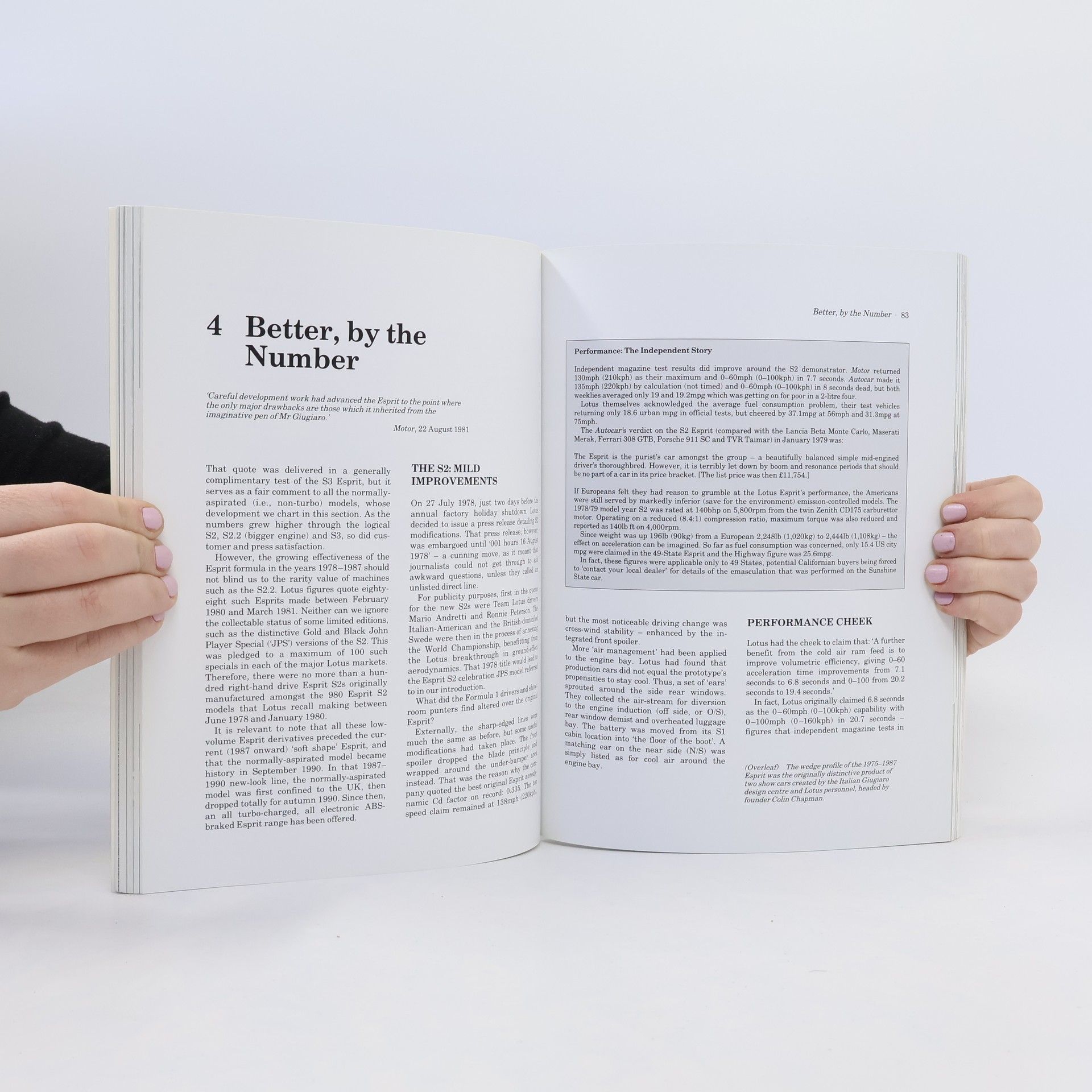 The evolution of the Lotus Esprit from the origin of its first design through a long production life up to the Esprit S and Esprit Turbo SE. Filled with practical advice on buying and running an Esprit in the 1990s. Includes specifications, road test details, comparisons with rivals, and profiles of the men behind the machine.