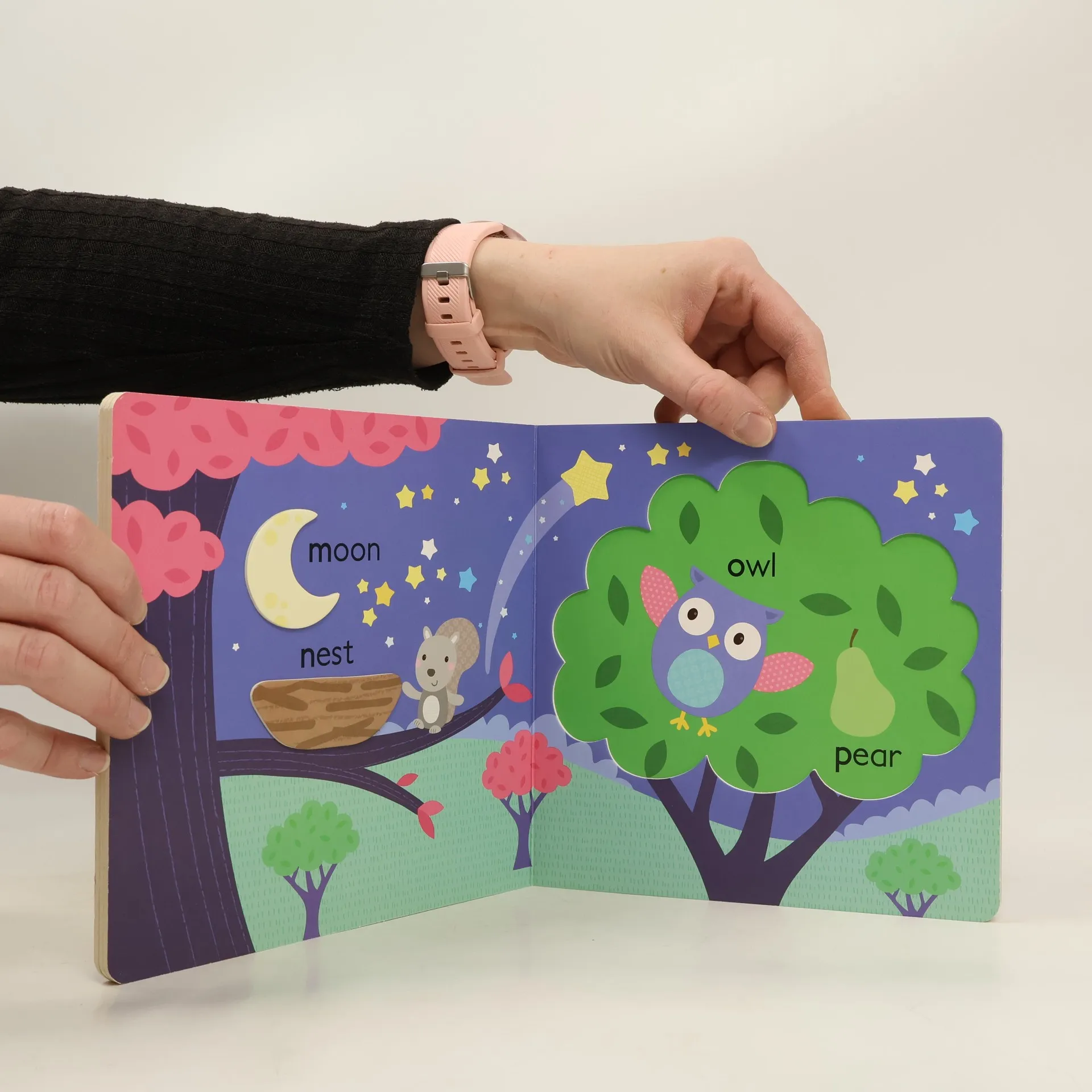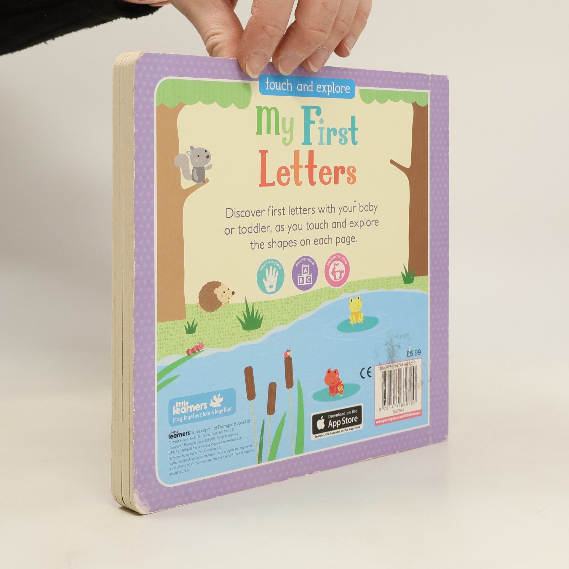 Color illustrations and guided words introduce young children to letters and words in the English language.