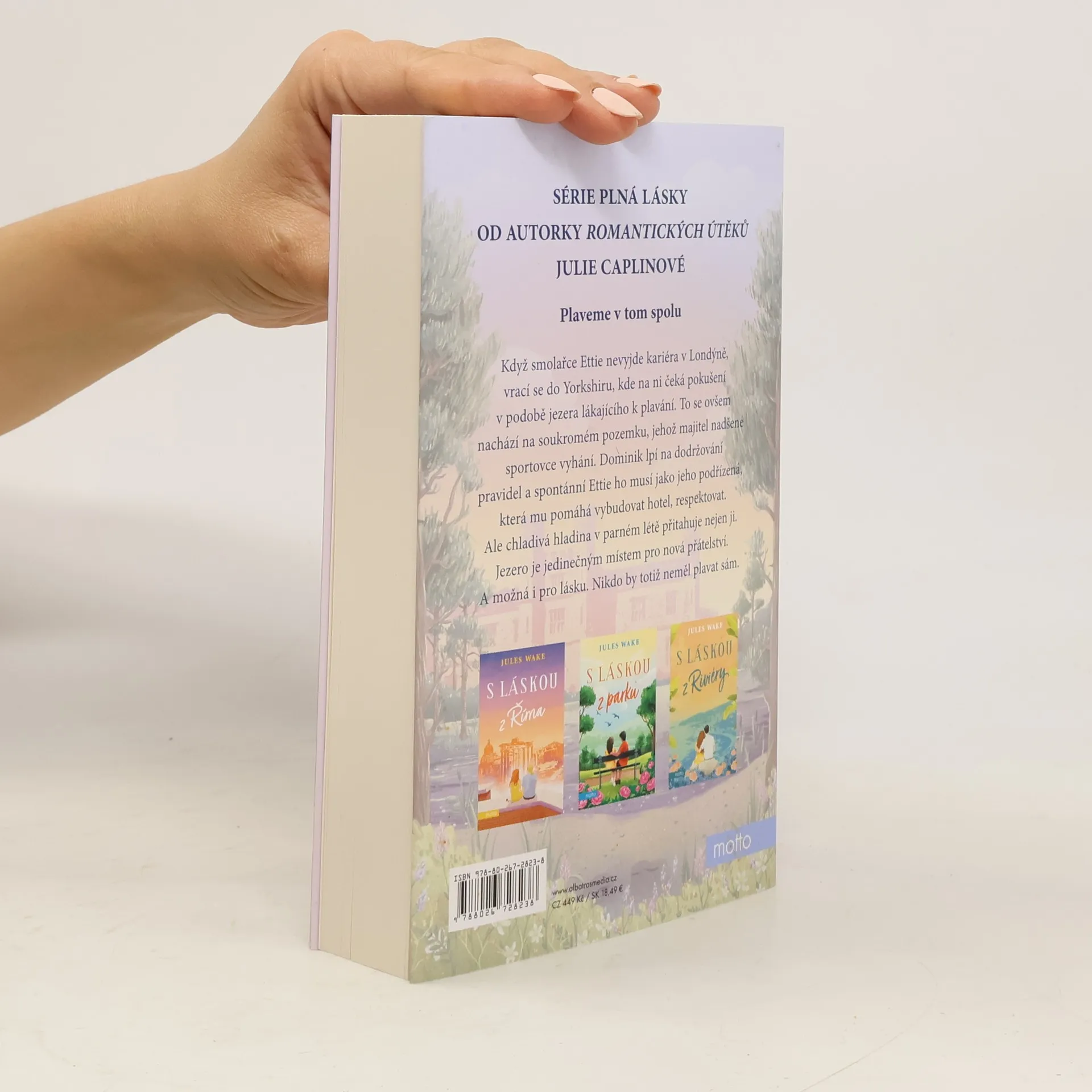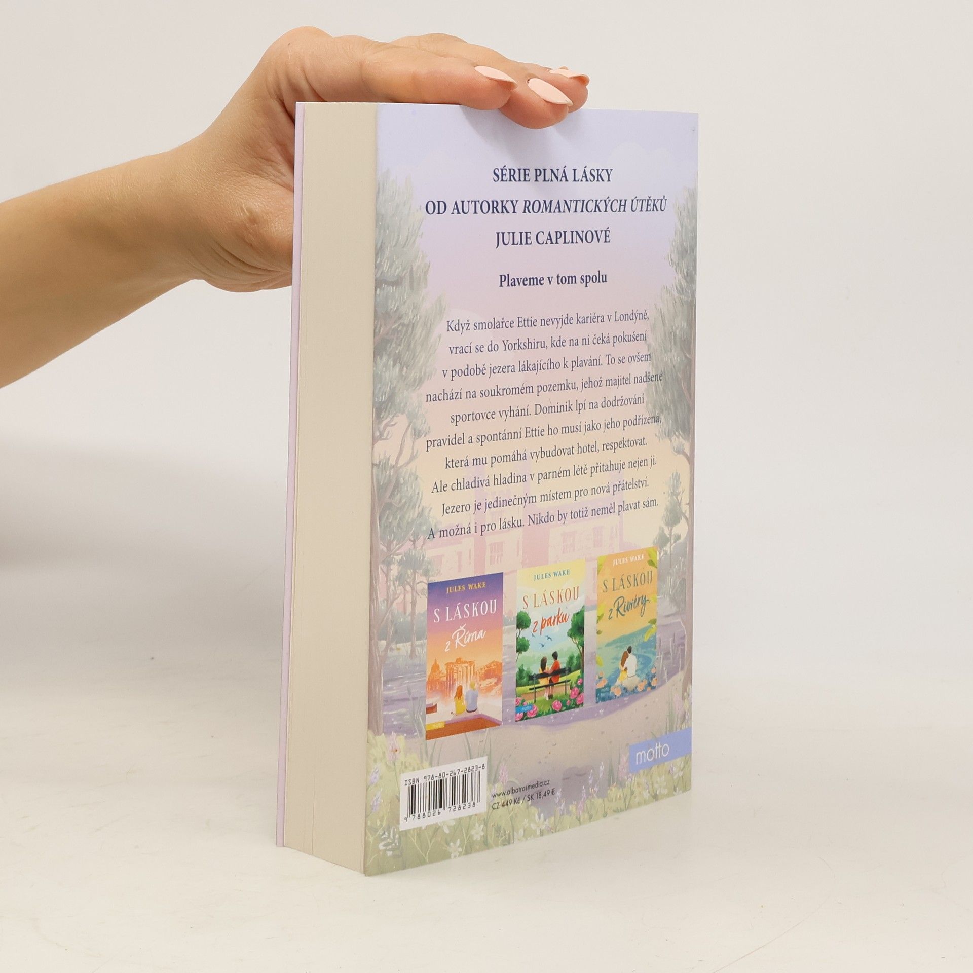 Román o lásce nejen k plavání od autorky známé jako Julie Caplinová Jules Wake, známá také jako Julie Caplinová, tentokrát vypráví o lásce, která nedbá varování, a především o plavání a jeho blahodárných účincích na tělo i mysl. Když smolařce Ettie nevyjde kariéra v Londýně, vrací se do Yorkshiru, kde na ni čeká pokušení v podobě jezera ve zdánlivě opuštěném zámeckém parku. To se ovšem nachází na soukromém pozemku, jehož majitel nadšené sportovce vyhání. Dominik lpí na dodržování pravidel a spontánní Ettie ho musí jako jeho podřízená, která mu pomáhá vybudovat hotel, respektovat. Ale chladivá hladina v parném létě přitahuje nejen ji. Jezero je jedinečným místem pro nová přátelství. A možná i pro lásku. Nikdo by totiž neměl plavat sám.
