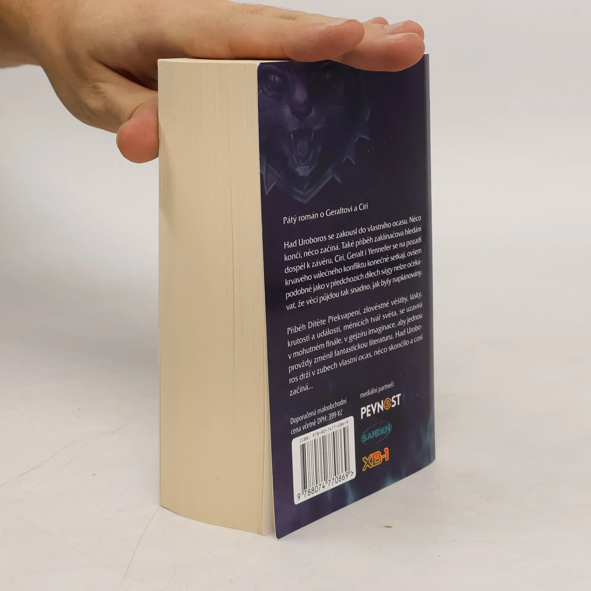 Had Uroboros se zakousl do vlastního ocasu. Něco končí, něco začíná. Také příběh Zaklínačova hledání dospěl k závěru, Ciri, Geralt i Yennefer se na pozadí krvavého válečného konfliktu konečně setkají, ovšem podobně jako v předchozích dílech ságy nelze očekávat, že věci půjdou tak snadno, jak byly naplánovány. Příběh Dítěte Překvapení, zlověstné věštby, lásky, krutosti a událostí, měnících tvář světa, se uzavírá v mohutném finále, v gejzíru imaginace, aby jednou provždy změnil fantastickou literaturu. Had Uroboros drží v zubech vlastní ocas, něco skončilo a cosi začíná.