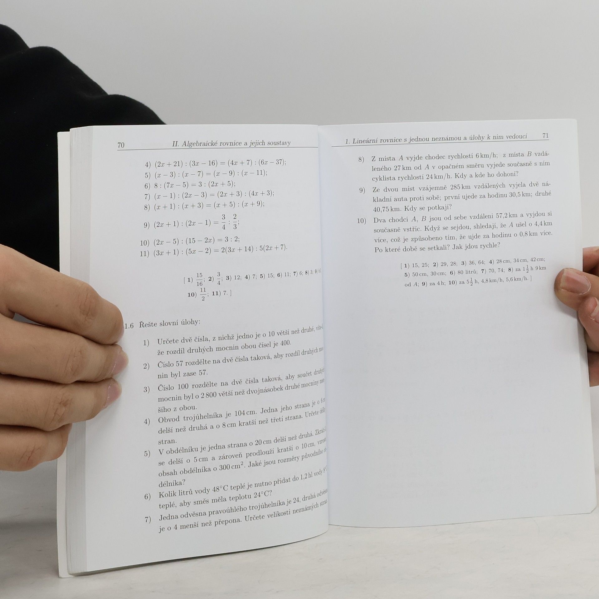 Sbírka obsahuje rozsáhlý soubor neřešených úloh na úpravy algebraických výrazů a na řešení rovnic, nerovnic a jejich soustav v množině reálných čísel. Zastoupeny jsou i slovní úlohy. Sbírka přináší bohatý materiál k procvičování učiva, ale i k systematickému opakování. Je vhodná pro žáky všech středních škol.