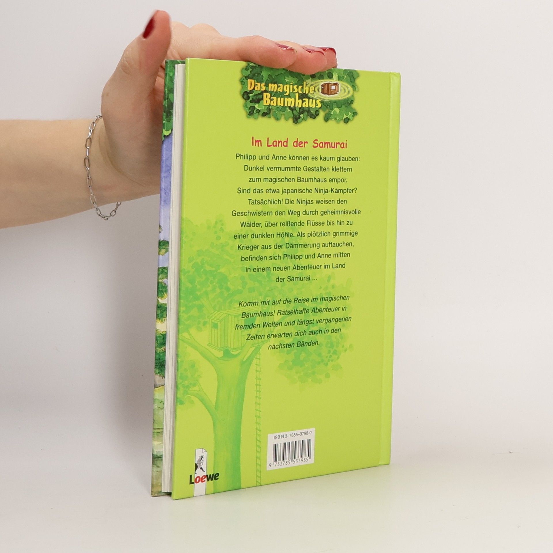 Philipp und Anne können es kaum glauben: Dunkel vermummte Gestalten klettern zum magischen Baumhaus empor. Das können nur japanische Ninja-Kämpfer sein! Die Ninjas weisen den Geschwistern den Weg durch geheimnisvolle Wälder, über reißende Flüsse bis hin zu einer dunklen Höhle. Als plötzlich grimmige Krieger aus der Dämmerung auftauchen, befinden sich Philipp und Anne mitten in einem neuen Abenteuer im Land der Samurai ... Komm mit auf die Reise im magischen Baumhaus! Rätselhafte Abenteuer in fremden Welten und längst vergangenen Zeiten erwarten dich auch in den anderen Bänden. Die beliebte Kinderbuch-Reihe von Bestsellerautorin Mary Pope Osborne! Die Geschwister Anne und Philipp reisen mit dem magischen Baumhaus durch die Zeit. Sie erleben spannende Abenteuer, entdecken ferne Länder und lernen viele berühmte Persönlichkeiten kennen.
