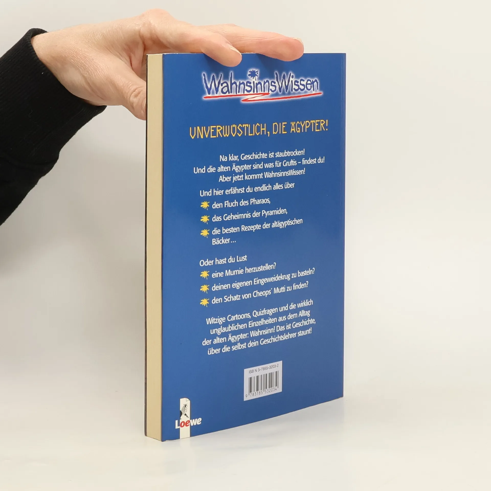 Na klar, Geschichte ist staubtrocken! Und die alten Ägypter sind was für Grufties - findest du! Aber jetzt kommt WahnsinnsWissen! Und hier erfährst du endlich alles über: - den Fluch des Pharao, - das Geheimnis der Pyramiden, - die besten Rezepte der altägyptischen Bäckermeister ... Oder hast du Lust: - eine Mumie herzustellen? - deinen eigenen Eingeweidekrug zu basteln? - den Schatz von Cheops Mutti zu finden? Witzige Cartoons, Quizfragen und die wirklich unglaublichen Einzelheiten aus dem Alltag der alten Ägypter: Wahnsinn! Das ist Geschichte, über die selbst dein Geschichtslehrer staunt!