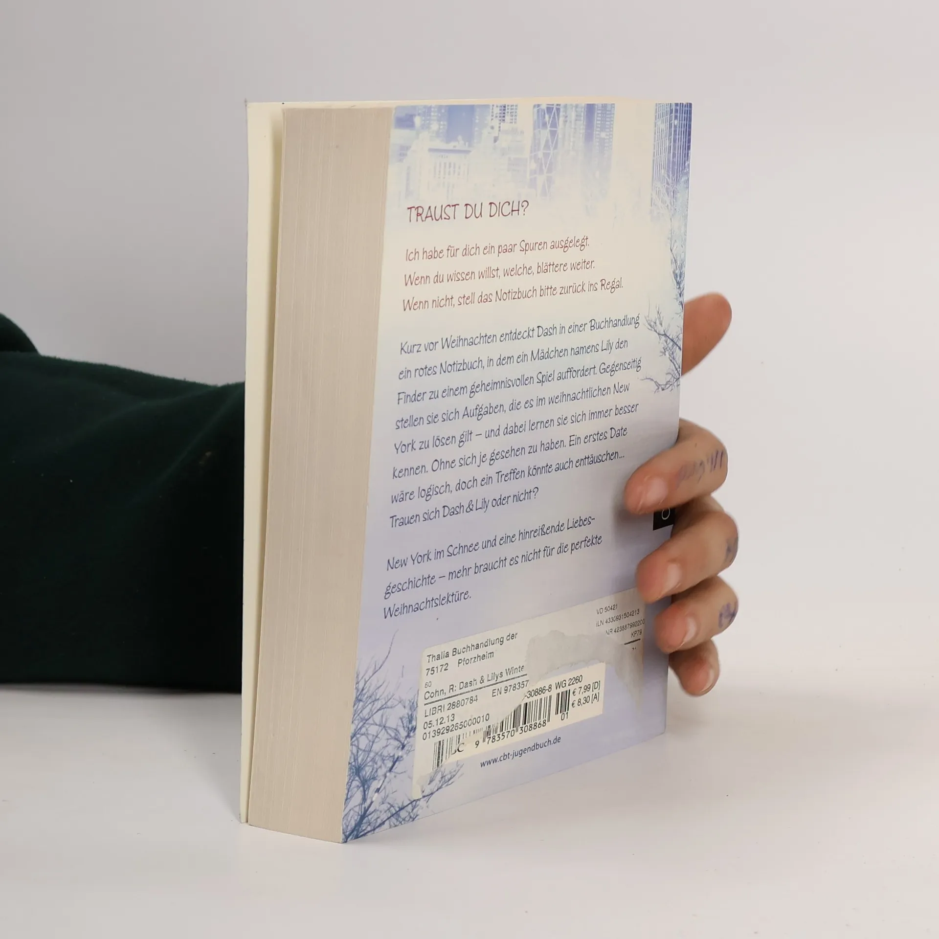 Eine hinreißende Winter-Weihnachts-RomanzeKurz vor Weihnachten entdeckt Dash in einer Buchhandlung ein rotes Notizbuch, in dem ein Mädchen namens Lily den Finder zu einem geheimnisvollen Spiel auffordert. Bald schicken sich die beiden gegenseitig quer durch Manhattan. Über das Notizbuch tauschen sie ihre Gedanken und Träume aus und kommen sich dadurch näher – ohne sich jedoch zu begegnen. Immer größer wird der Wunsch, den anderen endlich kennenzulernen, und doch macht ihnen der Gedanke daran auch Angst. Und so zögern sie das erste Treffen hinaus, bis es fast zu spät ist …