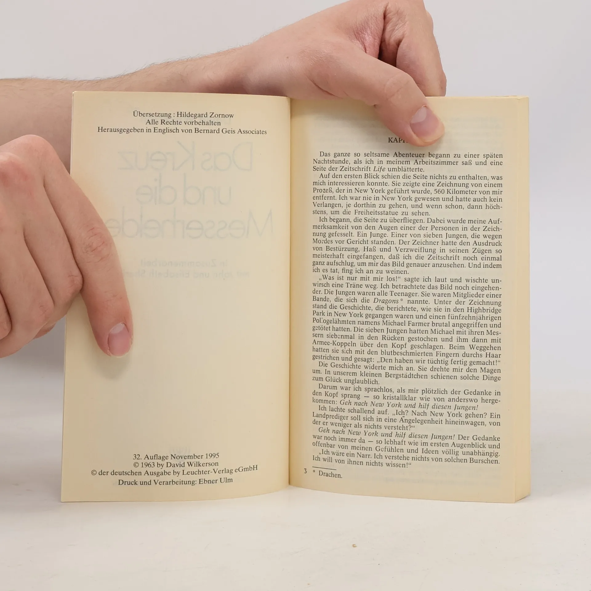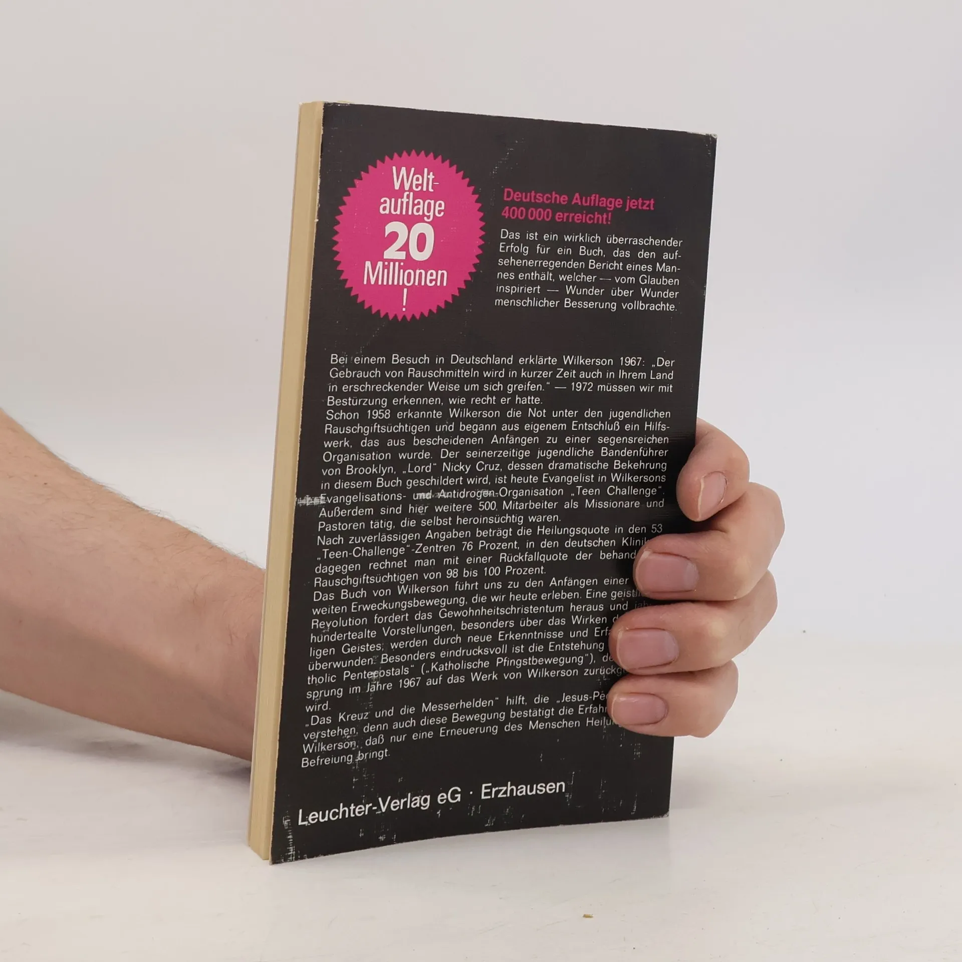 Bandenkriege, Messerstechereien, Drogen - mitten in diese Szene Brooklyns tritt ein Mann, erzählt leidenschaftlich und unkonventionell von der Liebe Gottes, riskiert dabei sein Leben und löst eine Erweckung unter den jugendlichen Bandenmitgliedern aus. David Wilkerson berichtet lebendig und packend von den dramatischen Erlebnissen aus der Zeit als Straßenprediger. Die weltweite Aufl age dieses Buches liegt bei 30 Millionen Exemplaren in 40 Sprachen. Allein in Deutschland fast 600.000 Stück in 35 Auflagen. überarbeitete und leicht gekürzte Ausgabe