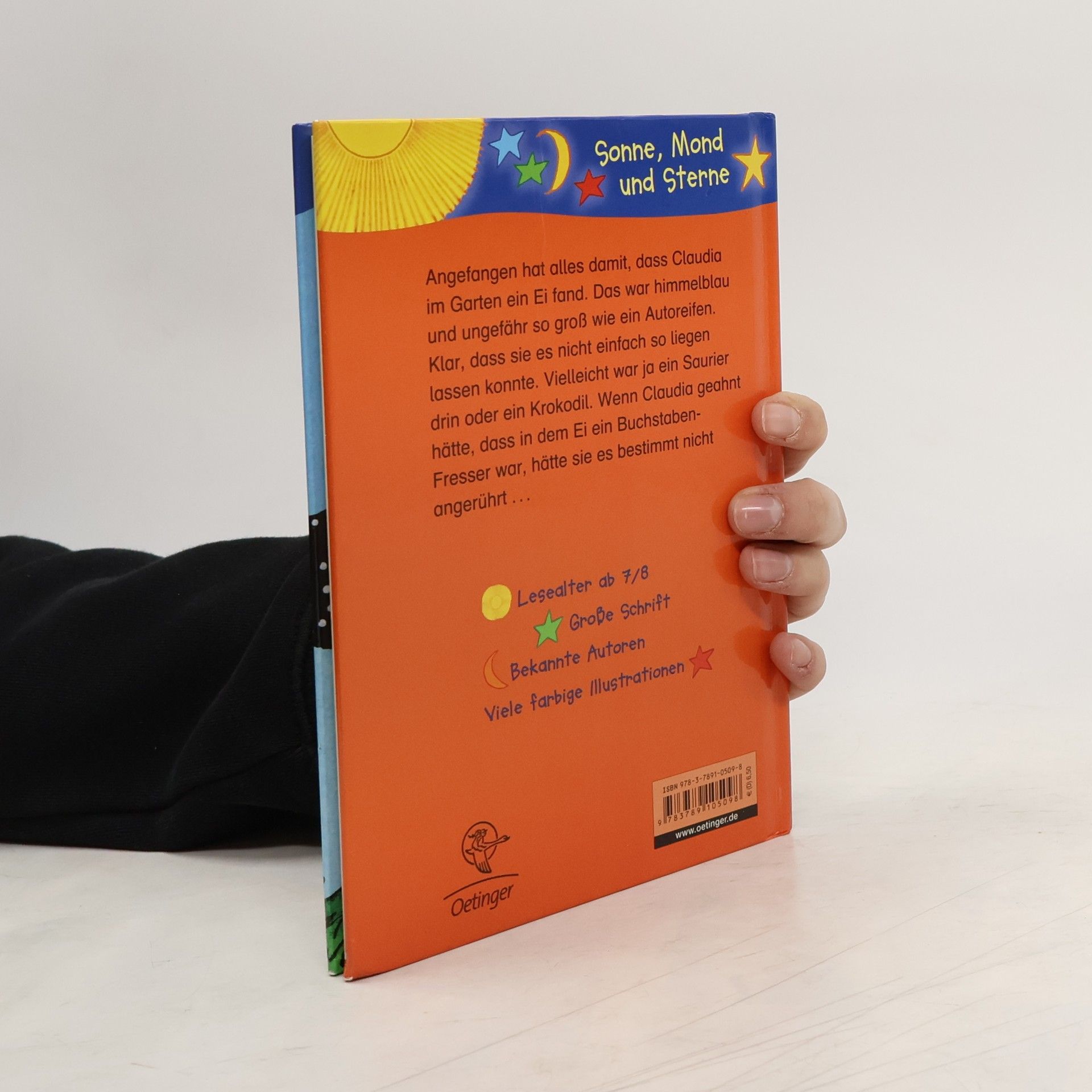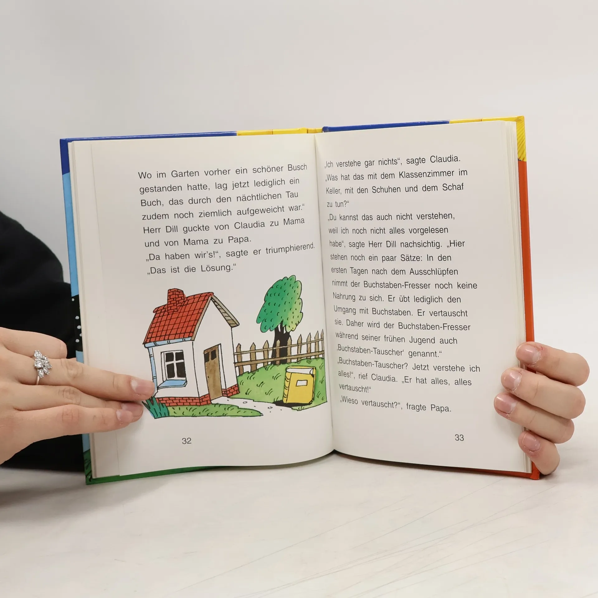 Angefangen hat alles damit, dass Claudia im Garten ein Ei fand. Das war himmelblau und ungefähr so groß wie ein Autoreifen. Klar, dass sie es nicht einfach so liegen lassen konnte. Vielleicht war ja ein Saurier drin oder ein Krokodil. Wenn Claudia geahnt hätte, dass in dem Ei ein Buchstaben-Fresser war, hätte sie es bestimmt nicht angerührt.