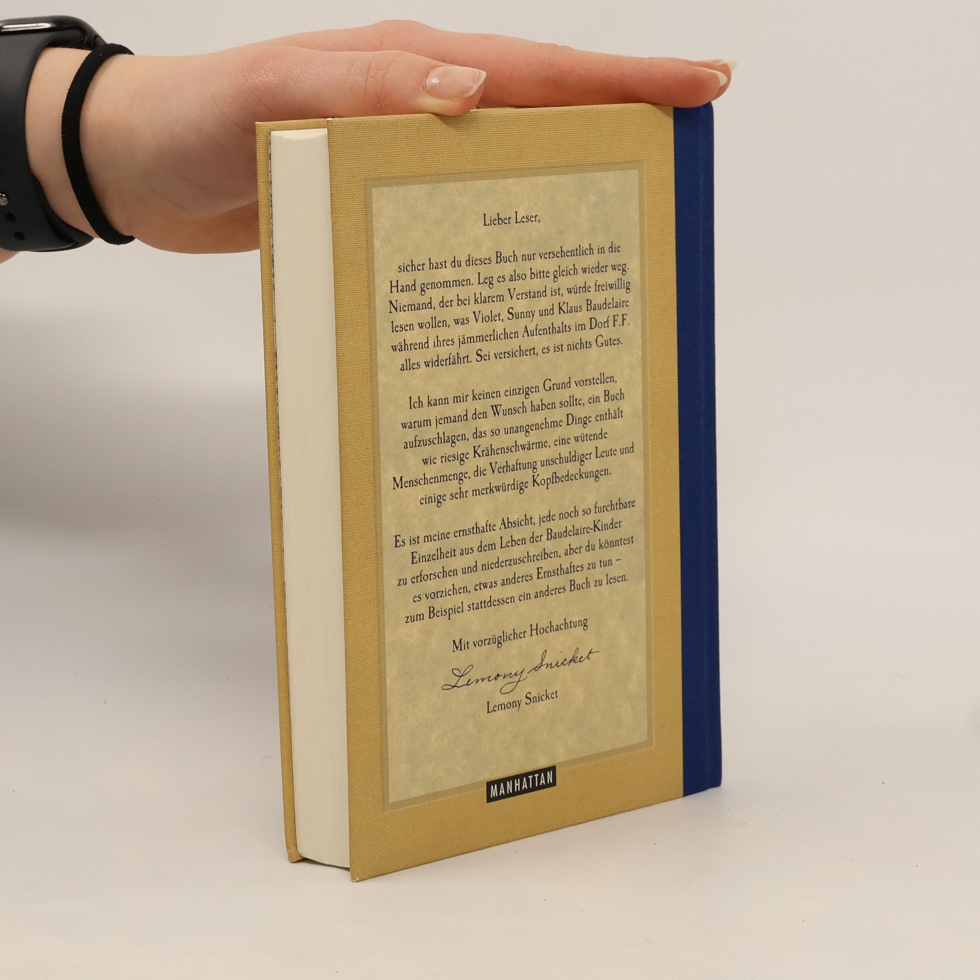 Auch wenn Sie die ersten sechs Bände aus der 'Reihe betrüblicher Ereignisse' schon gelesen haben – das ist noch lange kein Grund, jetzt damit weiterzumachen! Die Bände sieben bis neun enthalten nämlich derart deprimierende Geschichten, dass sich Ihnen beim Lesen garantiert der Magen umdrehen wird. Um Ihnen solches Ungemach zu ersparen, sollen hier auch keine grausigen Einzelheiten aus dem traurigen Leben der Baudelaire-Waisen erwähnt werden, insbesondere soll nicht von aufgehetzten Menschenmengen, zweiköpfigen Monstern, der Verhaftung und Ermordung unschuldiger Leute, der bedrohlichen Ansammlung schwarzer Krähen, überflüssigen Operationen, Gefängniszellen, ausgehungerten Löwenmeuten und vor allem nicht von Graf Olaf gesprochen werden. Der unglückselige Autor Lemony Snicket hat einen Eid abgelegt, das betrübliche Schicksal der drei Waisenkinder Klaus, Sunny und Violet zu erforschen und aufzuzeichnen. Sie aber könnten Ihre Zeit mit etwas Nützlichem und Erfreulichem verbringen – und zum Beispiel stattdessen ein anderes Buch lesen.