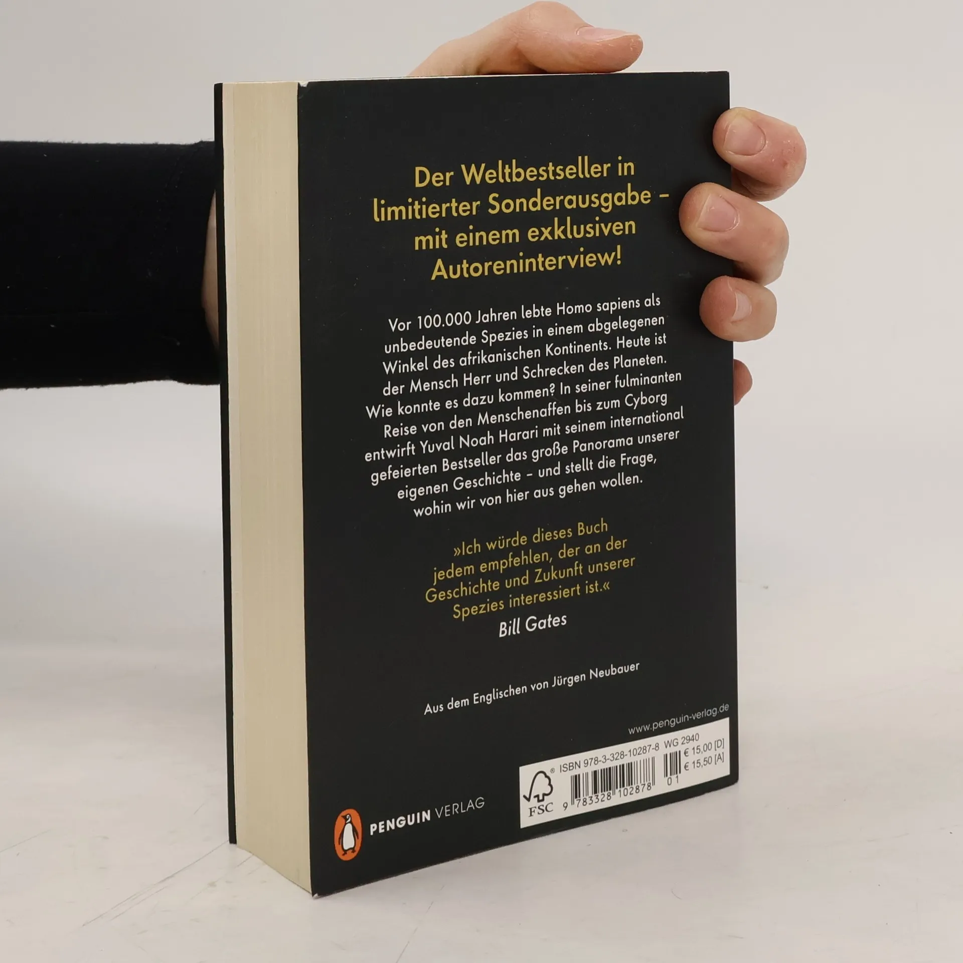 Der Bestseller in limitierter, exklusiver Auflage Vor 100.000 Jahren lebte Homo sapiens als unbedeutende Spezies in einem abgelegenen Winkel des afrikanischen Kontinents. Heute ist der Mensch Herr und Schrecken des Planeten. Doch wie konnte es dazu kommen? In seiner fulminanten Reise von den Menschenaffen bis übermorgen bürstet Yuval Noah Harari die Geschichte des Menschen als eine Geschichte des Fortschritts gegen den Strich. Er blickt gleichermaßen mit Mikroskop wie Teleskop auf unsere erstaunliche Entwicklung und zeigt erzählerisch so brillant wie humorvoll, wer wir sind und was aus uns wird. Der Weltbestseller in edler limitierter Geschenkausstattung. Mit einem exklusiven Autoreninterview.