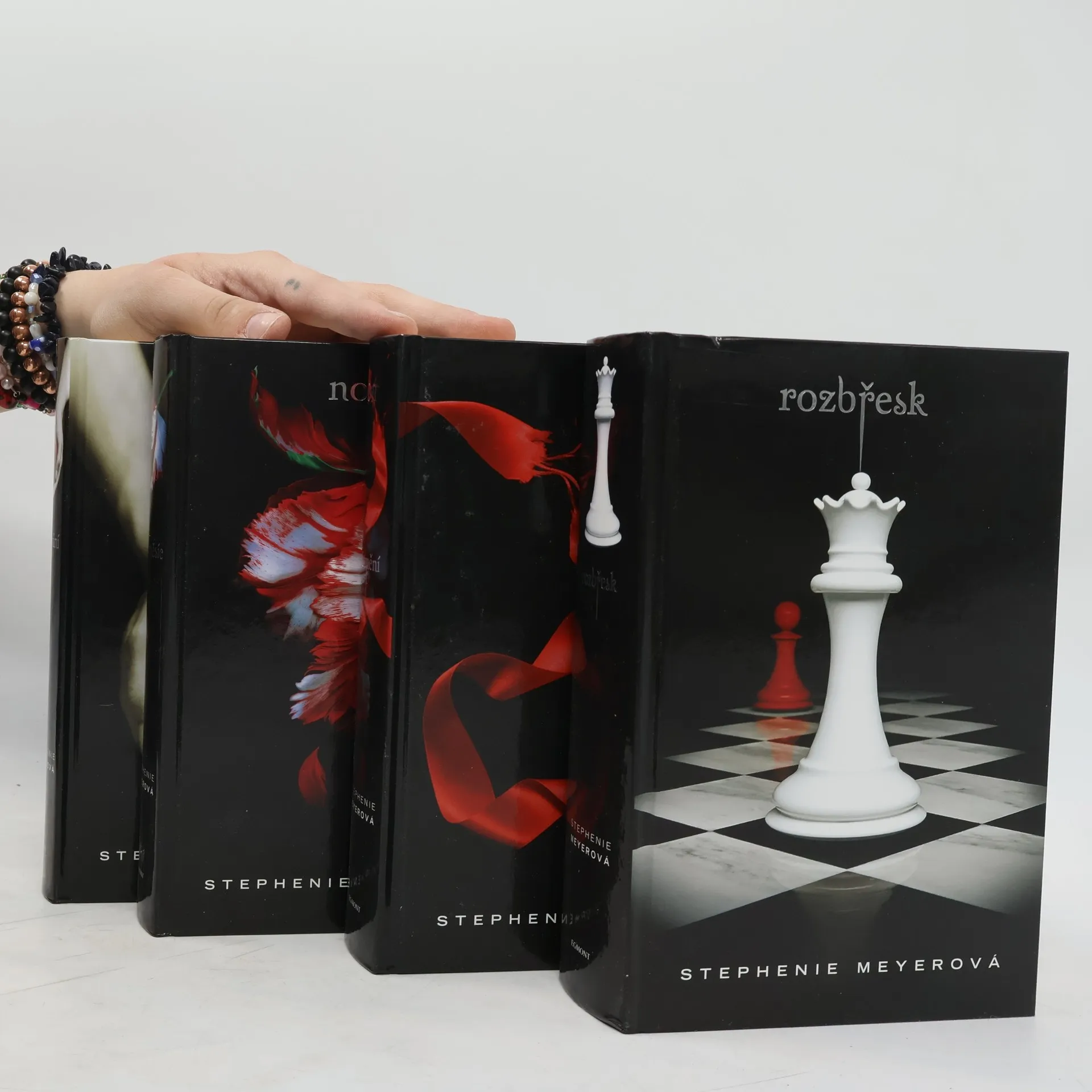 Box obsahující všechny 4 knihy romanticko-hororové ságy: Stmívání, Nový měsíc, Zatmění a Rozbřesk.