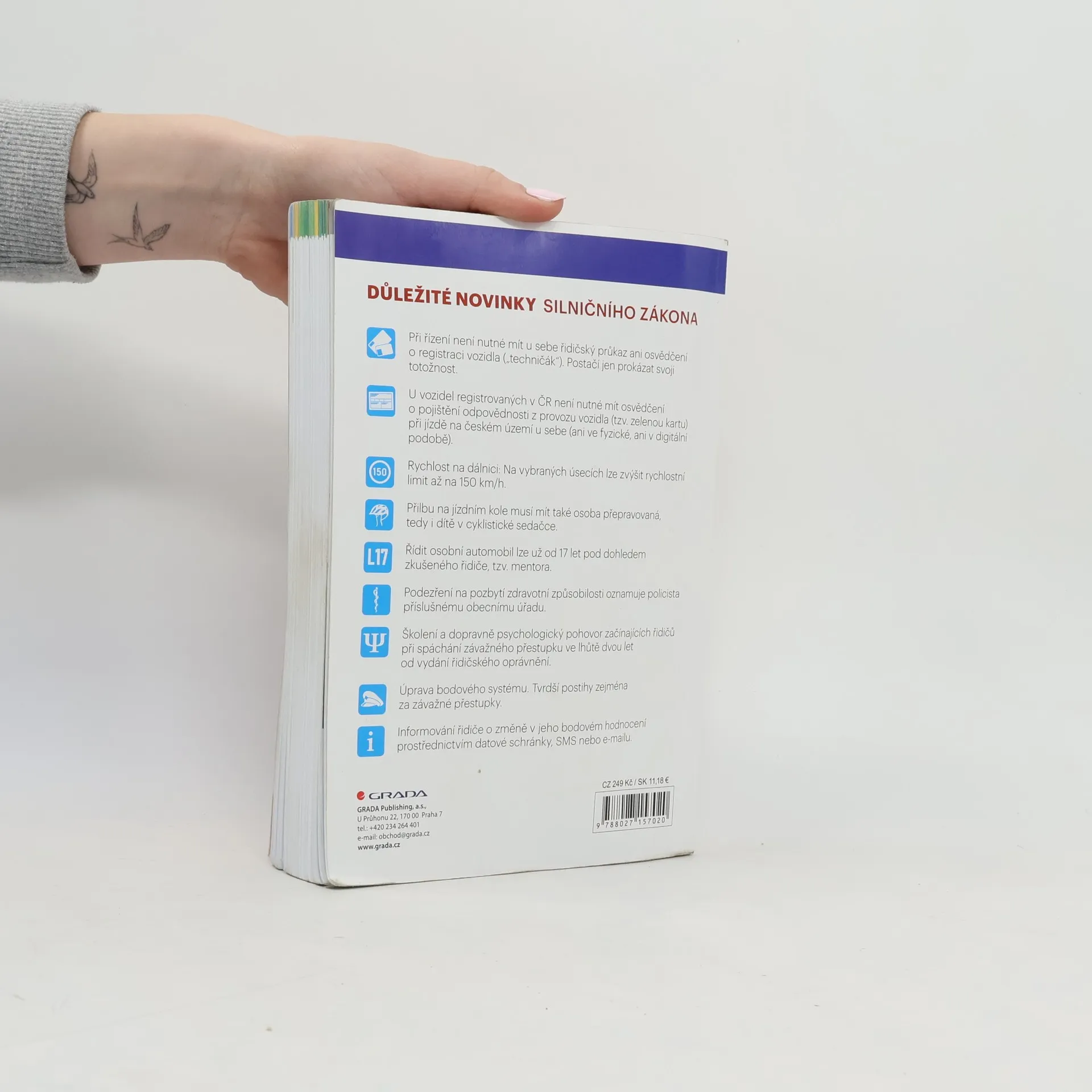 Nové vydání učebnice autoškoly obsahuje vše, co nezbytně potřebujete k získání řidičského oprávnění skupiny B: výklad pomocí názorných barevných fotografií, snadnou navigaci v knize pomocí hmatníků, kapitoly členěné podle předmětů v autoškole, ukázkové testy i praktické rady. Najdete zde všechna podstatná ustanovení zákona 361/2000 Sb. o provozu na pozemních komunikacích a souvisejících předpisů, výklad křižovatek včetně vysvětlení, informace o ovládání a údržbě vozidla, o bezpečné jízdě a zdravotnické přípravě.