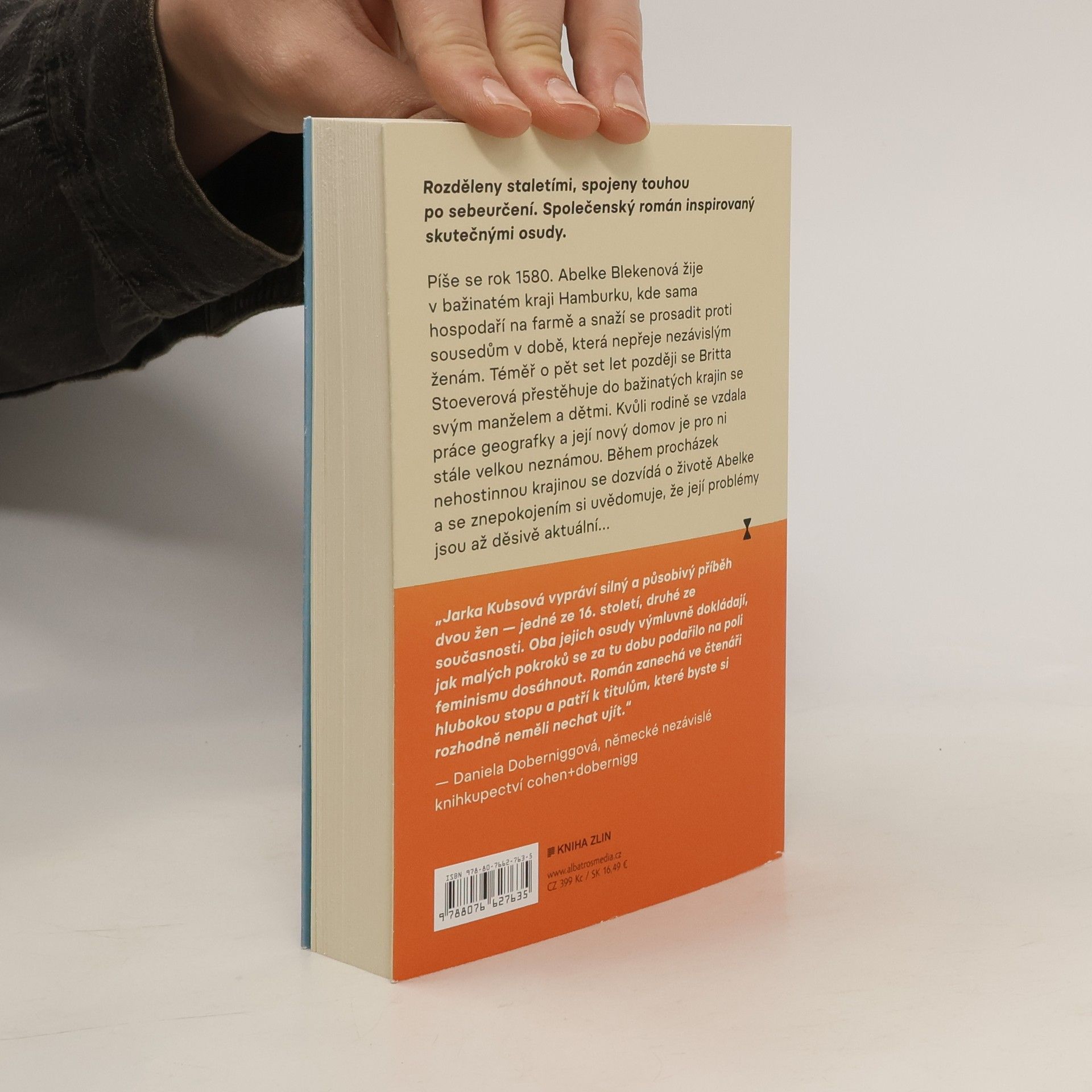 Rozděleny staletími, spojeny touhou po sebeurčení. Společenský román inspirovaný skutečnými osudy. Píše se rok 1580. Abelke Blekenová žije v bažinatém kraji Hamburku, kde sama hospodaří na farmě a snaží se prosadit proti sousedům v době, která nepřeje nezávislým ženám. Téměř o pět set let později se Britta Stoeverová přestěhuje do bažinatých krajin se svým manželem a dětmi. Kvůli rodině se vzdala práce geografky a její nový domov je pro ni stále velkou neznámou. Během procházek nehostinnou krajinou se dozvídá o životě Abelke a se znepokojením si uvědomuje, že její problémy jsou až děsivě aktuální… „Jarka Kubsová vypráví zuřivý a strhující příběh o dvou ženách, z nichž jedna žila kolem roku 1580 a druhá v současnosti, přičemž oba osudy jsou nádhernou ukázkou toho, jak malé byly dosavadní vývojové kroky ve feminismu. Tento román rezonuje a je tím nejlepším čtením.“