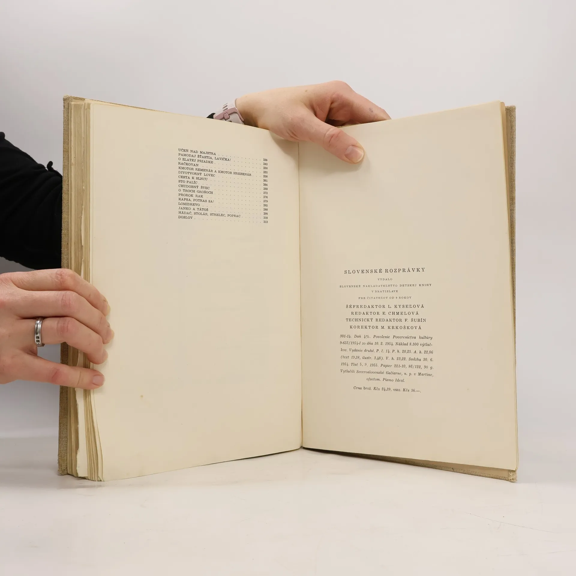 Rozprávky : Ježova koža, Čert slúži, Nebojsa, Dalajláma, Popolvár, Baba a čert, Zhavranelí bratia, Baláž, Martinka a Janko, Stratený chlapec, O smelej Marcuške, Kmotor Činčurinka fiškálom, Dievča bez rúk, Zlatovláska, Braček jelenček, O hlúpej žene, Ženský vtip, Zlatý kolovrátok, Dobrý strelec, Tri zlaté hrušky, Dvaja šibali, Janko polienko, Ako utiekla múdrosť s pálčivosťou, Hrdá panička, Loktibrada, Žaba, Zakliata hora, Tri stromy, Zakliaty zámok, Soľ nad zlato, Divotvorné gajdy, O šuhajovi, čo biedu hľadal, Popoluška, Janove príhody, Kráľ času, O troch bratoch, Krivý vlas, Kohút, kocúr a kyjanica, O dvanástich mesiačikoch, O zlatovlasej Aničke, Účes nad majstra, Pamodaj šťastia lavička! , O zlatej priadke, Račkovan, Kmotor remenár a kmotor hrebenár, Divotvorný lovec, Cesta k slncu, Sto palíc, Chudobný švec, O troch grošoch, Prorok rak, Kapsa, potras sa !, Lomidrevo, Janko a tátoš, Hádač, stolár, strelec, poprac. brož. 24 Kčs , viaz. 31 Kčs