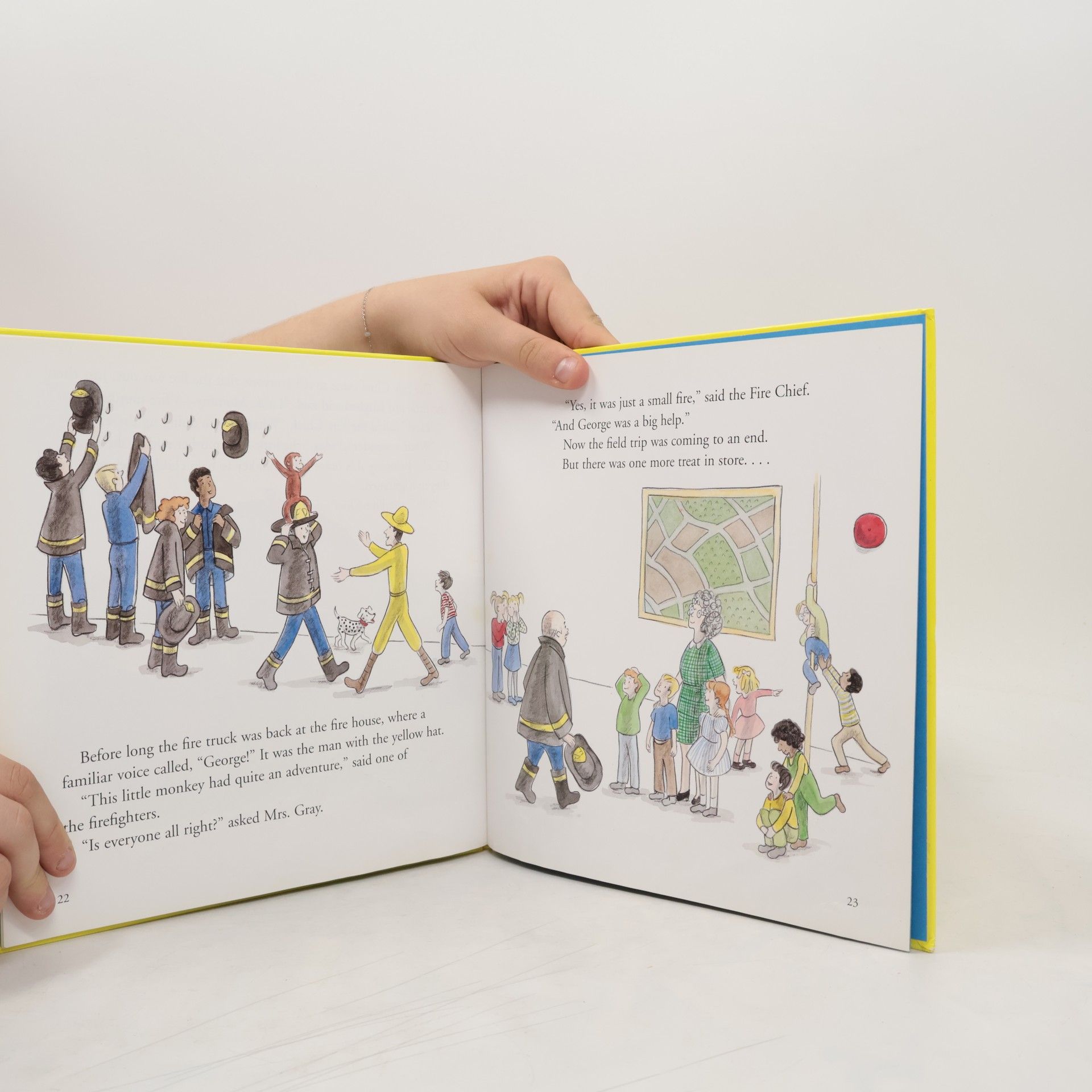 While on a field trip to a fire station with Mrs. Gray's class, Curious George goes off on his own and is soon at the scene of a fire, where he finds a way to be helpful.