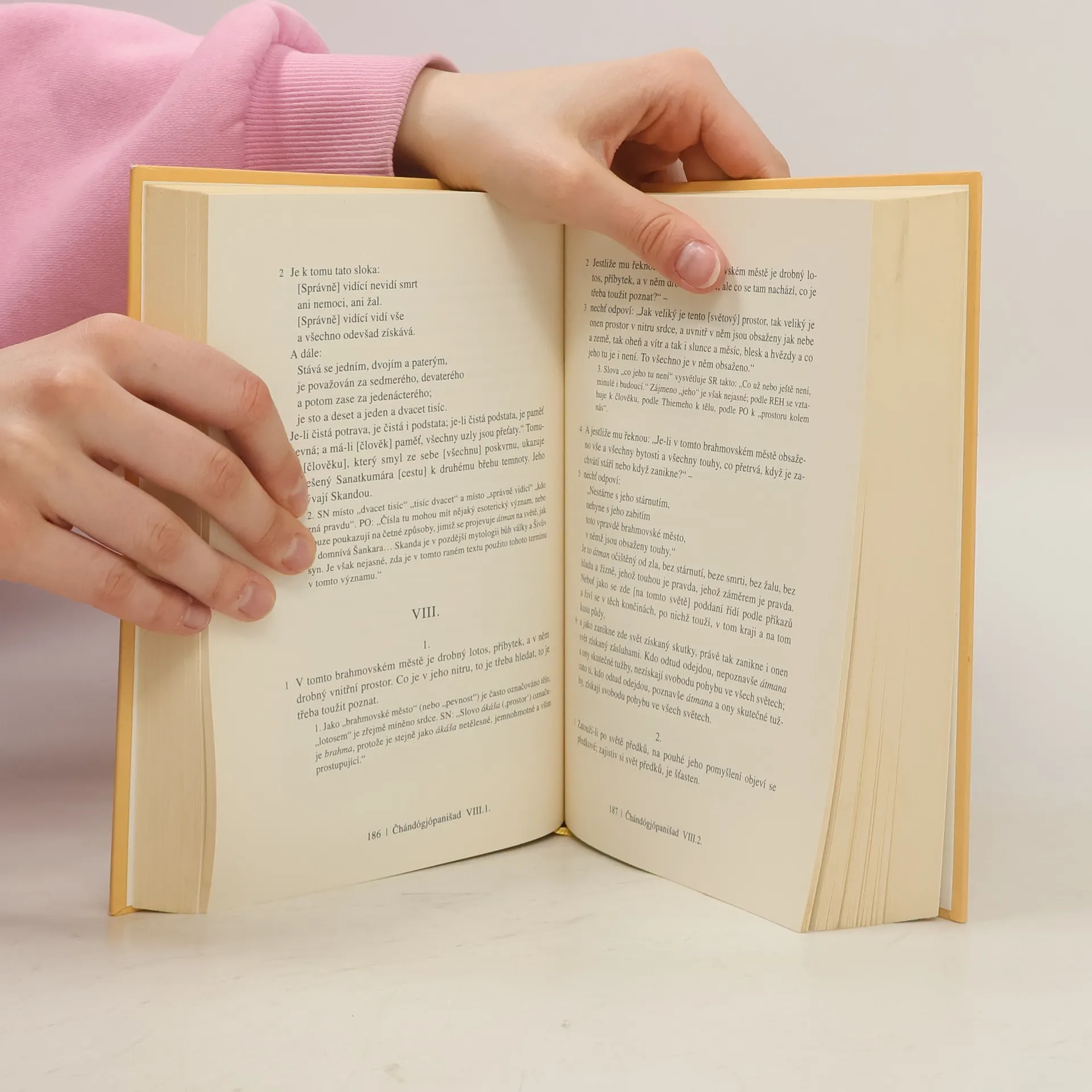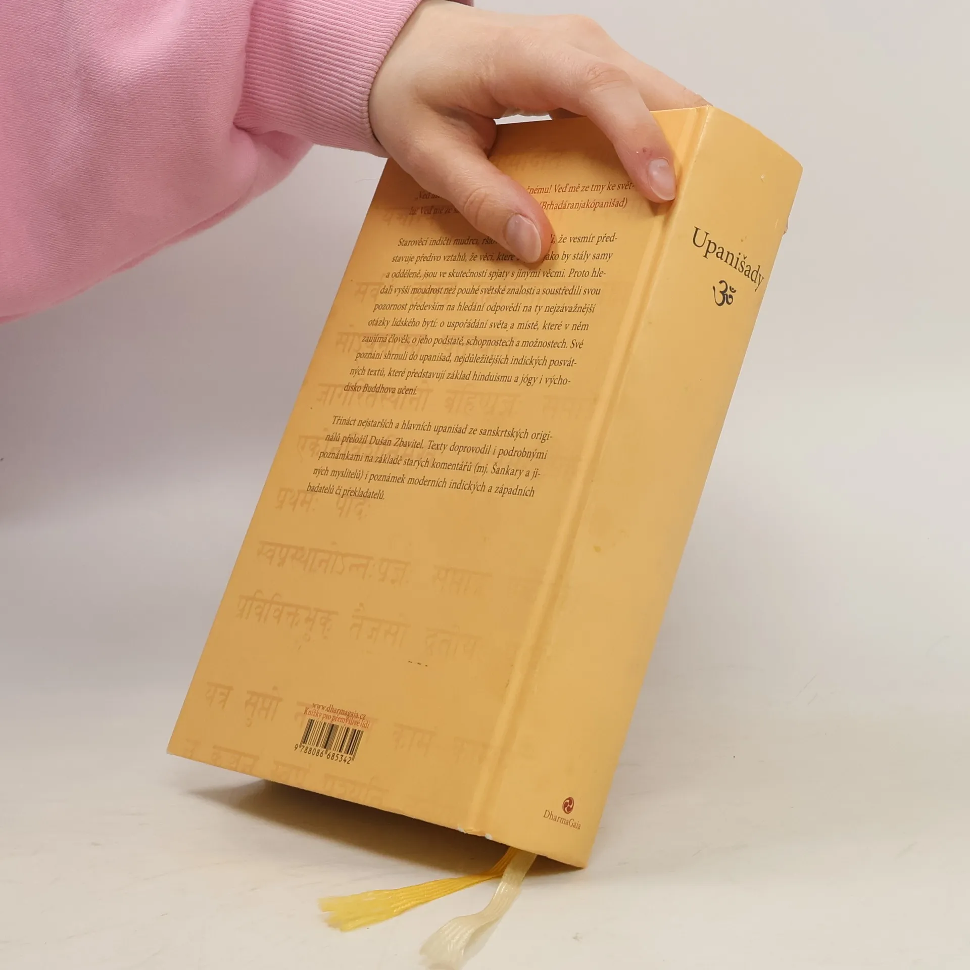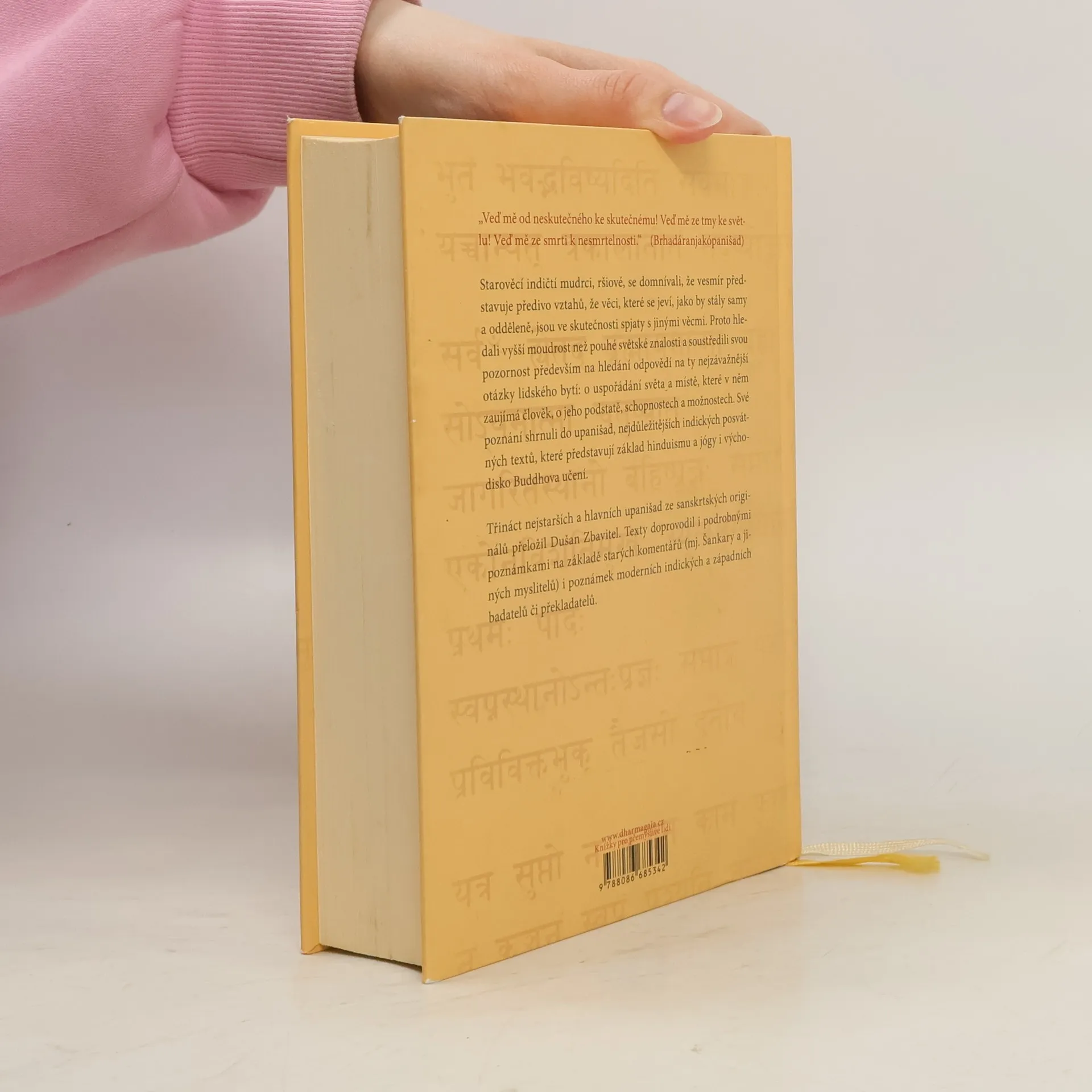 Skvost světové literatury, nejvýznamnější a filosofické posvátné texty staré Indie (8.–3. stol. př. n. l.), mají kulturní význam srovnatelný s biblí. Jsou základem hinduismu, jógy a indické filosofie, a také východiskem buddhismu. Obsahují třináct starých indických posvátných textů, mezi nimiž jsou hlavní upanišady jako Brhadáranjaka, Čhándógja a další. Překladatel Dušan Zbavitel, který za svůj překlad obdržel Státní cenu, doplnil texty podrobnými poznámkami založenými na starých komentářích a moderních badatelích. Toto období, považované za "osovou dobu lidských dějin", bylo klíčové pro formování světového myšlení. V té době žili významní myslitelé jako Buddha a Konfucius. Starověcí indičtí mudrci, ršiové, usilovali o vyšší moudrost a zkoumali spojení mezi lidským bytím a kosmickými skutečnostmi. Zatímco védské texty se soustředily na rituály, upanišady se zaměřily na lidskou osobu a její místo ve vesmíru. Závěrem upanišad je rovnice: átman, podstata "já", se rovná brahma, nejzazší realita světa. Tyto texty, bohaté na podněty k zamyšlení, ovlivnily nejen indickou filosofii, ale i buddhismus a džinismus, a v 19. století také západní myslitele. Dodnes jsou významným zdrojem pro učitele jógy na Západě.