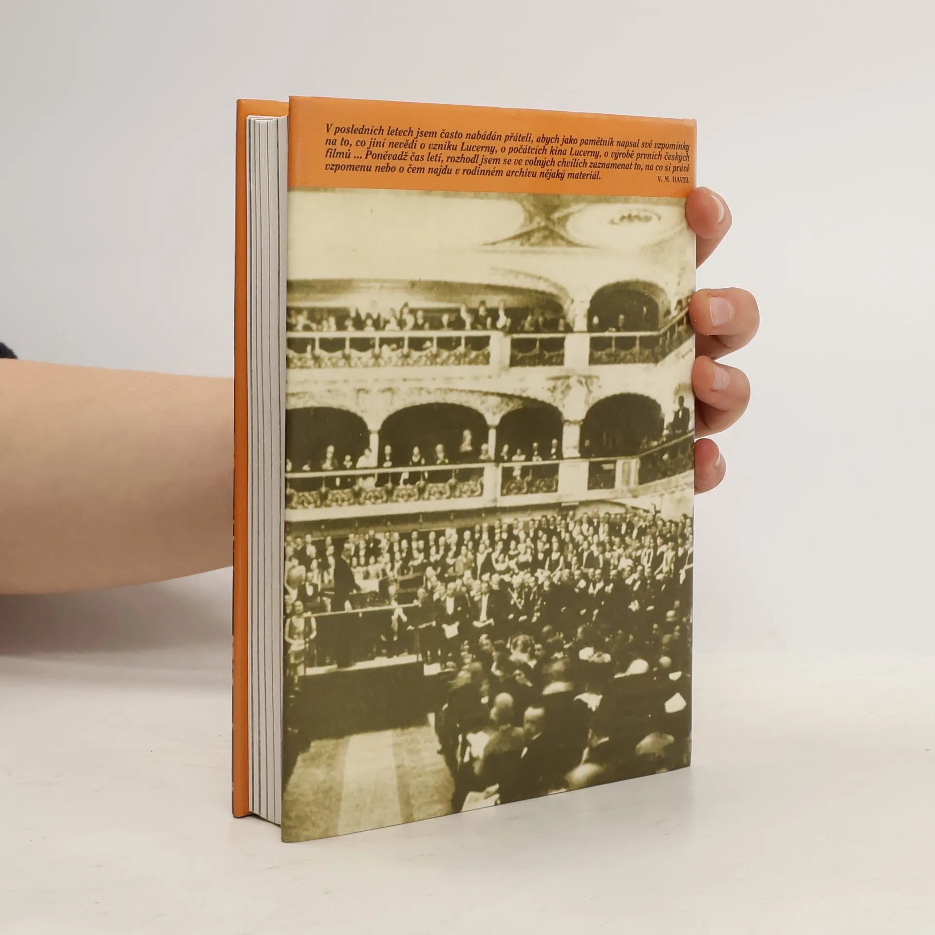 Vzpomínky na vznik Lucerny i Barrandova, na okolnosti, za nichž vznikaly první české filmy, ale především na dobu, kterou autor nazval "doba podnikatelská" - na první republiku. Úvod: Zdeněk Urbánek. Doslov: Václav a Ivan Havlovi. Ediční poznámka: Karel Palek. Ilustrace: fotografie z archivu rodiny Havlů