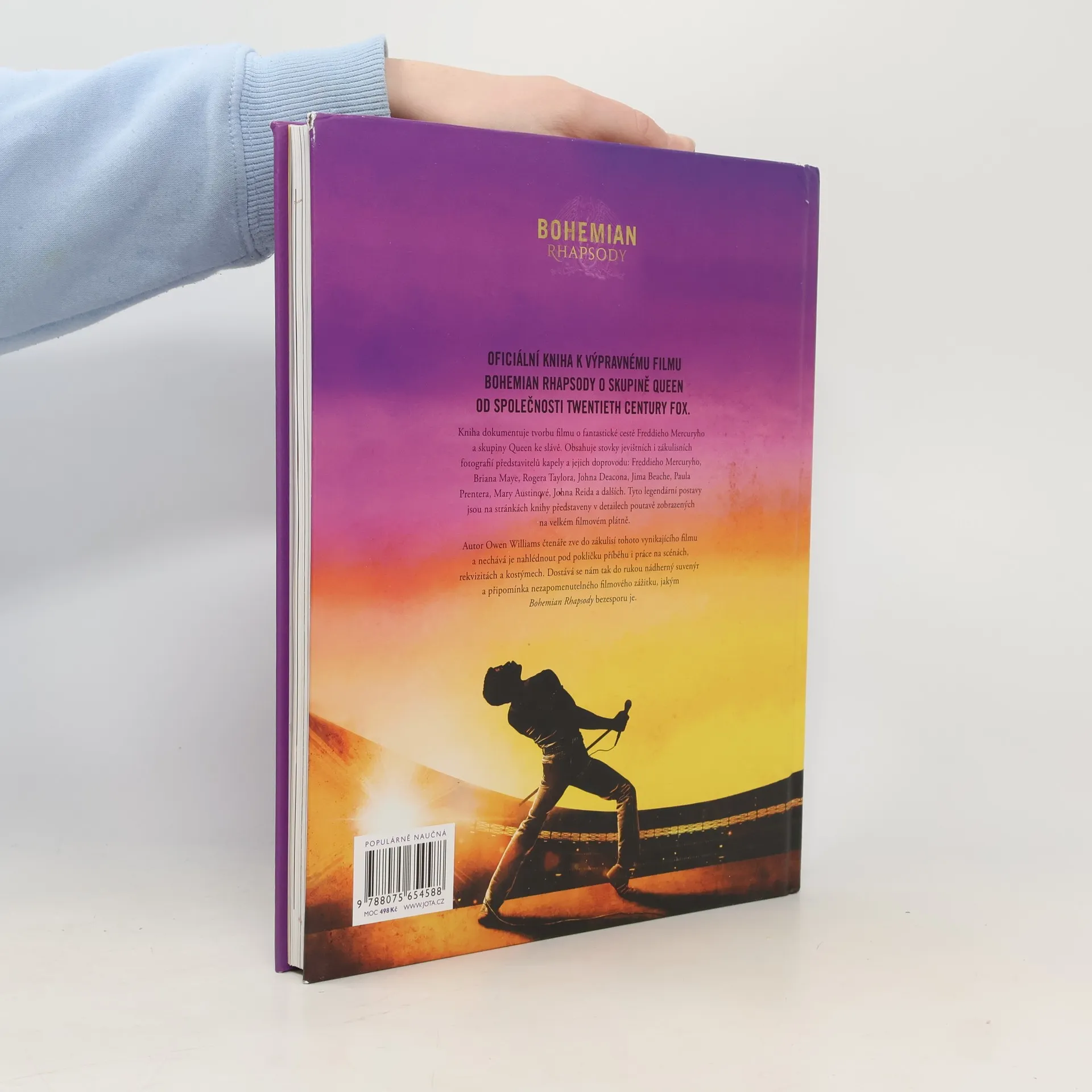 Ze zákulisí filmového megahitu. Oficiální kniha k výpravnému filmu Bohemian Rhapsody o skupině Queen od společnosti Twentieth Century Fox. Kniha dokumentuje fantastickou cestu Freddieho Mercuryho a skupiny Queen, jak byli zachyceni ve filmu. Obsahuje stovky jevištních i zákulisních fotografií členů kapely a jejich doprovodu: Freddieho Mercuryho, Briana Maye, Rogera Taylora, Johna Deacona, Jima Beache, Paula Prentera, Mary Austinové, Johna Reida a dalších. Tyto legendární postavy jsou na stránkách knihy představeny s detailností velkého filmového plátna. Autor Owen Williams nás zavádí do centra dění, v němž se natáčel tento vynikající film a nechává nás nahlédnout pod pokličku příběhu i práce na scénách, rekvizitách a kostýmech. Čtenáři se tak dostává do rukou nádherný suvenýr a připomínka nezapomenutelného filmového zážitku, jakým je Bohemian Rhapsody.