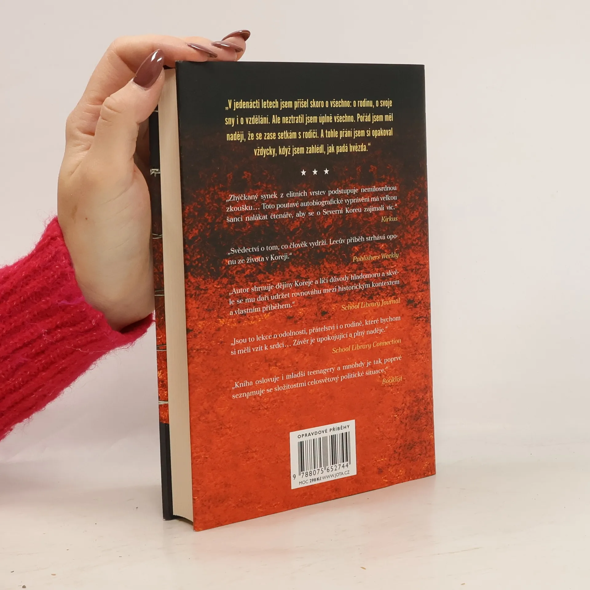 Skutečný příběh mého přežití a útěku ze Severní Koreje S každou padající hvězdou je hutně podaná autobiografie severokorejského chlapce jménem Sungdžu, který se ve dvanácti letech musel naučit žít na ulici a postarat se o sebe. Aby vůbec přežil, vytvořil s několika dalšími dětmi gang, naučil se krást, prát se i žebrat. Sungdžu barvitě líčí svůj drsný příběh a popisuje, jaké to je, když si nedospělý kluk musí najednou vystačit se skupinkou „bratrů“ z ulice, hladovět a prožívat strach z věznění nebo i popravy. Naděje je často to jediné, čeho se dá držet. Tyto poutavé vzpomínky rozkrývají čtenáři odlišnou kulturu, kde mnohé z toho, co považujeme za samozřejmé, vůbec neexistuje. Severní Korea jako reálná a děsivá dystopie.