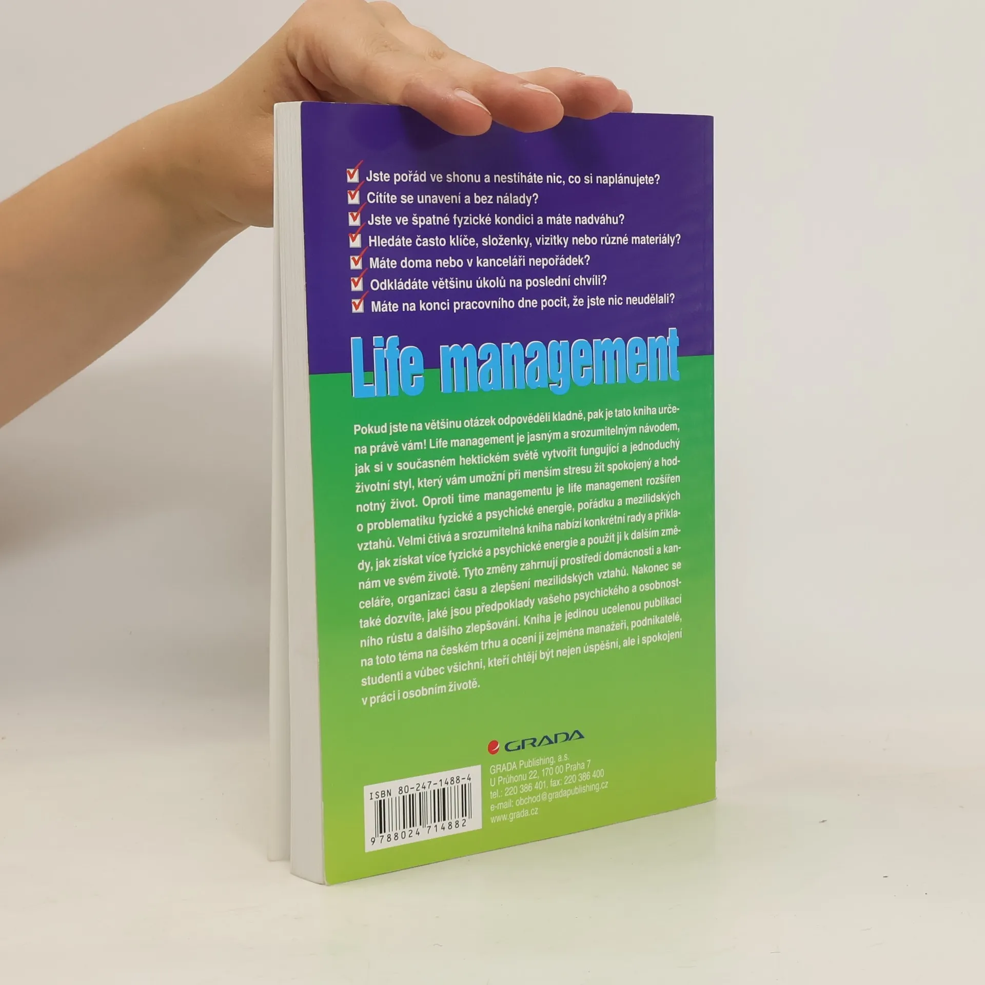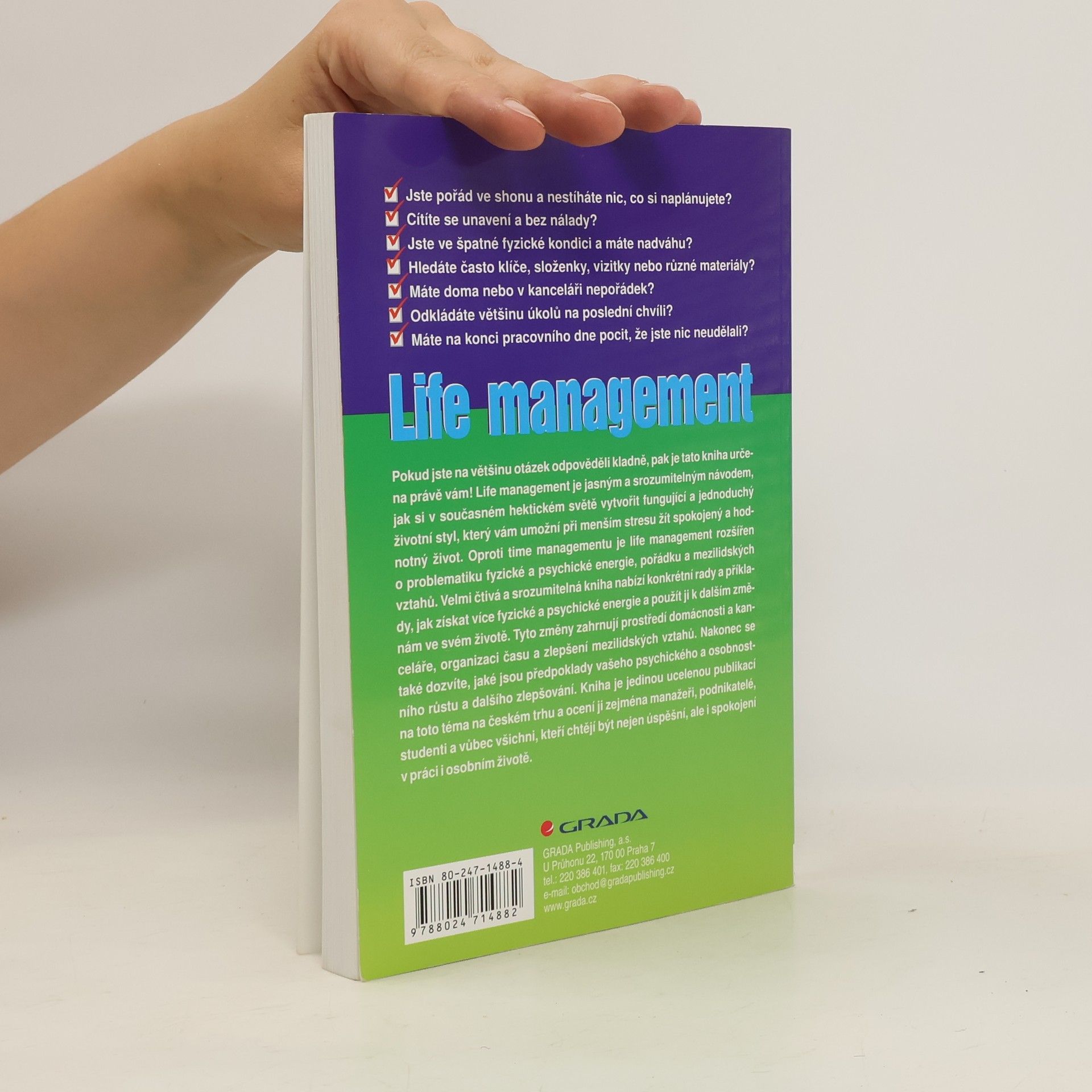 · Jste pořád ve shonu a nestíháte nic, co si plánujete? · Cítíte se unaveni a bez nálady? · Jste ve špatné fyzické kondici a máte nadváhu? · Hledáte často klíče, složenky, vizitky nebo různé materiály? · Máte doma nebo v kanceláři nepořádek? · Odkládáte většinu úkolů na poslední chvíli? · Máte na konci pracovního dne pocit, že jste nic neudělali? Pokud jste na většinu otázek odpověděli kladně, pak je tato kniha určena právě vám! Life management je jasným a srozumitelným návodem, jak si v současném hektickém světě vytvořit fungující a jednoduchý životní styl, který vám umožní při menším stresu žít spokojený a hodnotný život. Oproti time managementu je life management rozšířen o problematiku fyzické a psychické energie, pořádku a mezilidských vztahů. Velmi čtivá a srozumitelná kniha nabízí konkrétní rady a příklady, jak získat více fyzické a psychické energie a použít ji k dalším změnám ve svém životě. Tyto změny zahrnují prostředí domácnosti a kanceláře, organizaci času a zlepšení mezilidských vztahů. Nakonec se také dozvíte, jaké jsou předpoklady vašeho psychického a osobnostního růstu a dalšího zlepšování. Kniha je jedinou ucelenou publikací na toto téma na českém trhu a ocení ji zejména manažeři, podnikatelé, studenti a vůbec všichni, kteří chtějí být nejen úspěšní, ale i spokojení v práci i osobním životě.