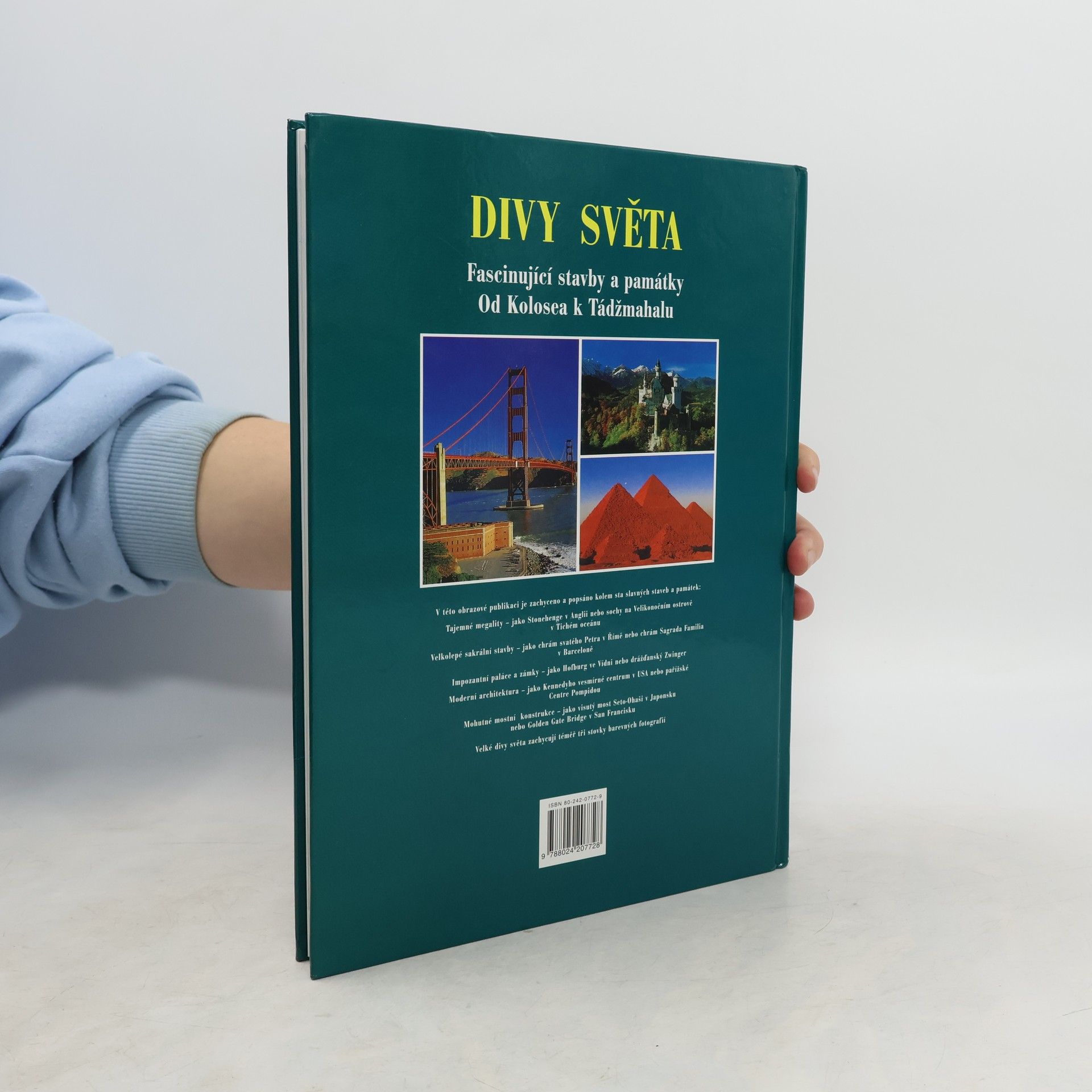 Tato obrazová publikace předvádí na stovku pozoruhodných a facsinujících staveb v rozmezí deseti tisíc let. Spektrum je široké, chrámy kostely, paláce a zámky, ale i ulice plné vody, přehrady, železnice a samozřejmě i věže a mrakodrapy našeho století. Publikace je rozdělena podle světadílů, stati udávají jednotlivé tematické okruhy jako například kostely skouží fundované historické informaci a usnadňuje přehled. Každé stabě je věnována jedna dvojstrana. Fascinující obrazy - kolem tři set dokonalých barevných fotografií - předvádějí velké divy tohoto světa.