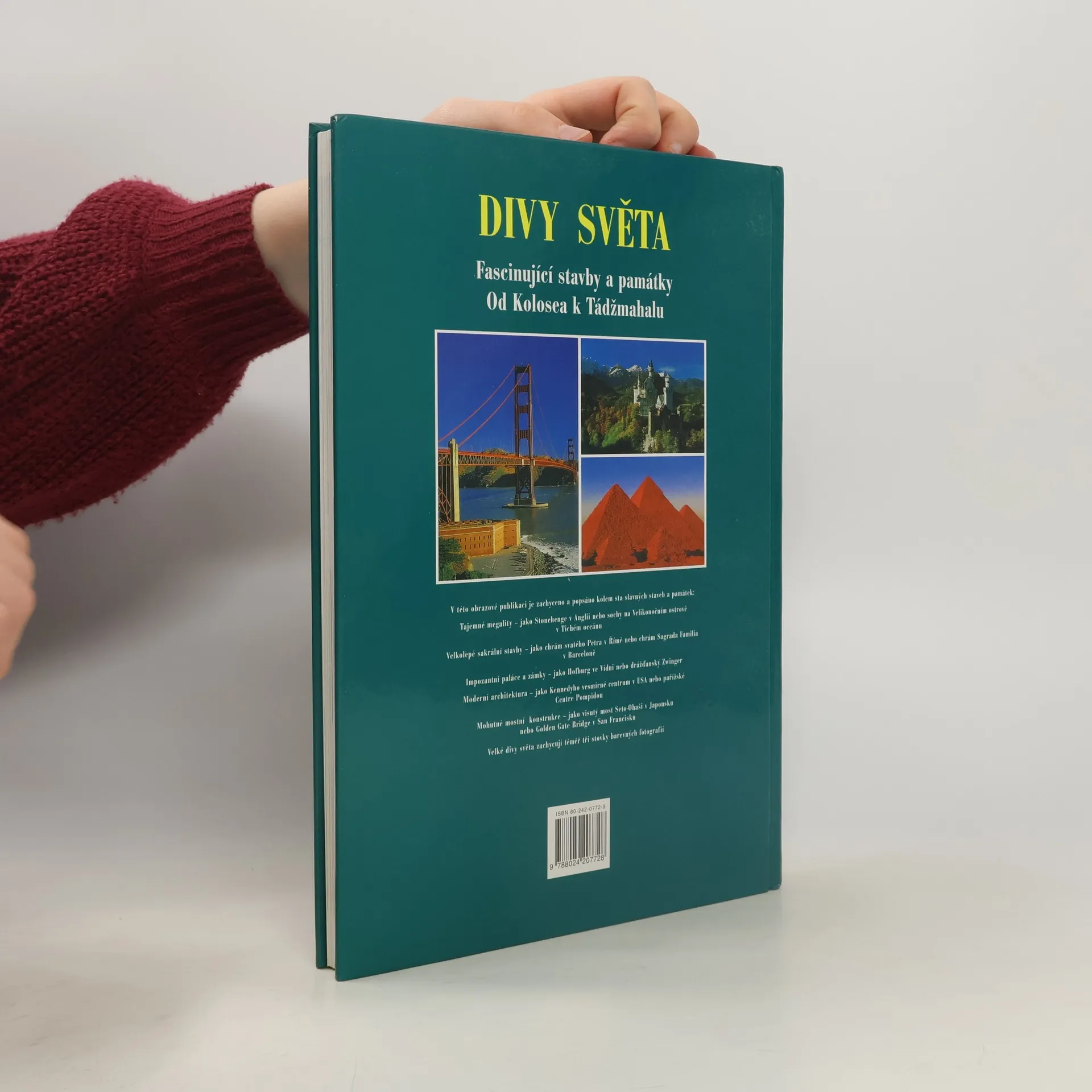 Tato obrazová publikace předvádí na stovku pozoruhodných a facsinujících staveb v rozmezí deseti tisíc let. Spektrum je široké, chrámy kostely, paláce a zámky, ale i ulice plné vody, přehrady, železnice a samozřejmě i věže a mrakodrapy našeho století. Publikace je rozdělena podle světadílů, stati udávají jednotlivé tematické okruhy jako například kostely skouží fundované historické informaci a usnadňuje přehled. Každé stabě je věnována jedna dvojstrana. Fascinující obrazy - kolem tři set dokonalých barevných fotografií - předvádějí velké divy tohoto světa.