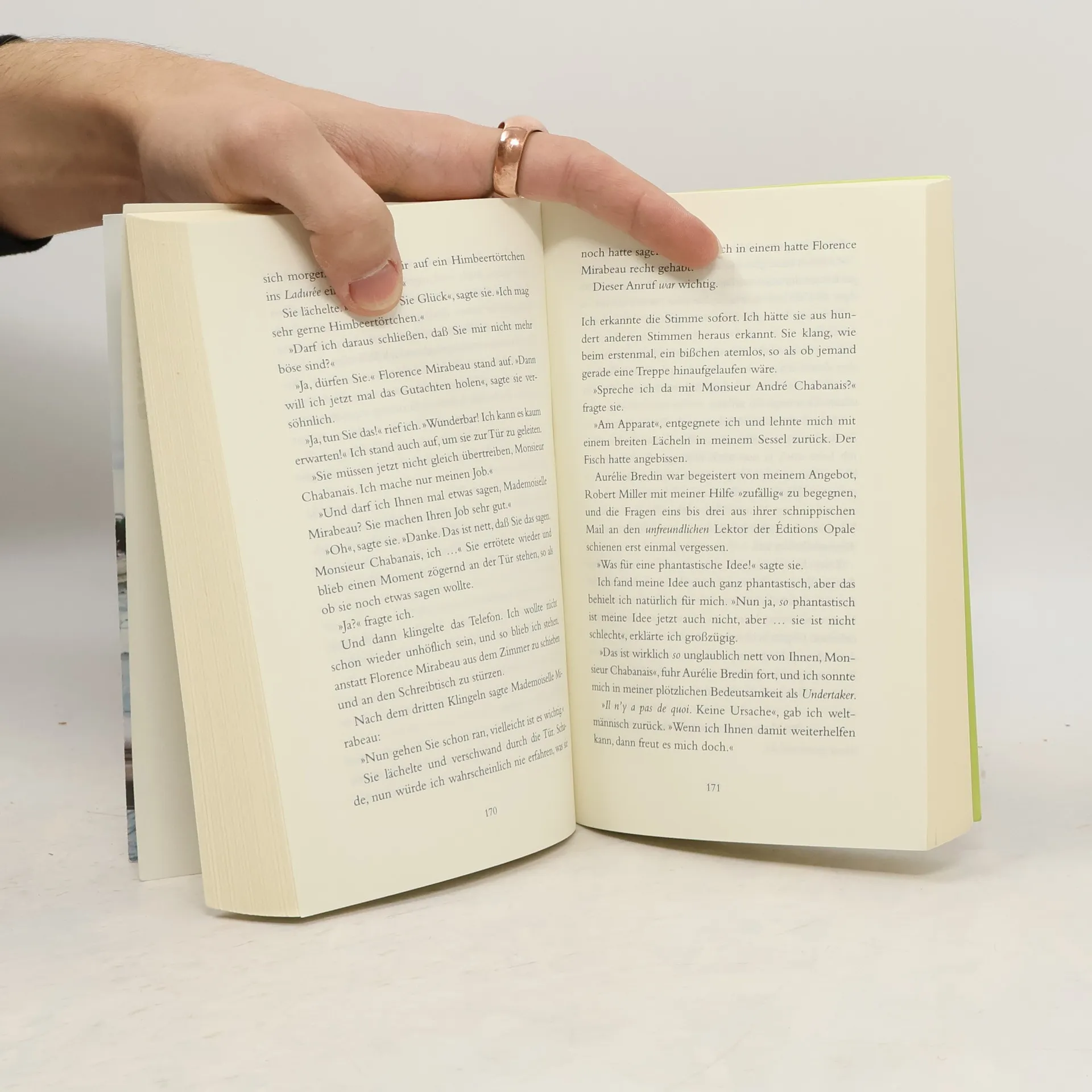 Die junge Restaurantbesitzerin Aurélie hat Liebeskummer: Von einem Tag auf den anderen wurde sie von ihrem Freund verlassen. Unglücklich streift sie durch Paris und stößt in einer kleinen Buchhandlung auf einen Roman, der gleich in den ersten Sätzen nicht nur ihr Lokal, sondern auch sie selbst beschreibt. Begeistert von der Lektüre, möchte Aurélie den Autor des Buchs kennenlernen, doch der ist leider sehr menschenscheu, erfährt sie vom Lektor des französischen Verlags. Aber Aurélie gibt nicht auf …