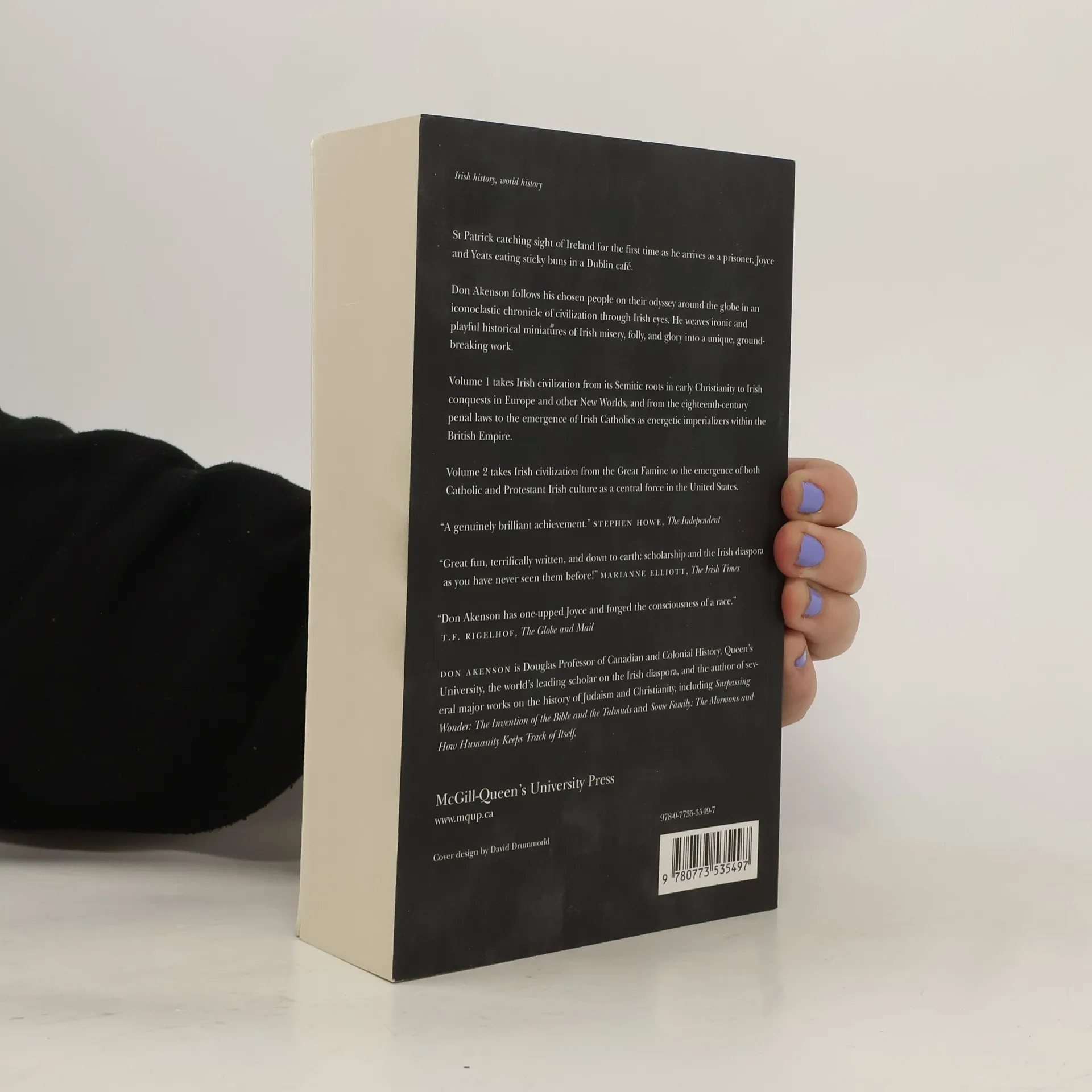 St Patrick catching sight of Ireland for the first time as he arrives as a prisoner, Joyce and Yeats eating sticky buns in a Dublin cafe. In a daring, genre-breaking work, the world's foremost scholar of the Irish diaspora fuses history and fiction into an iconoclastic chronicle of civilization through Irish eyes. From St Patrick to Woody Guthrie, Constantine to John F. Kennedy, India to the Australian outback, Don Akenson's "An Irish History of Civilization" is about the Irish at home and abroad, the great and the small, the noble and the depraved, the wise and the foolish. Akenson weaves ironic and playful historical miniatures of Irish misery, folly, and glory. Like the archetypal stories in the Talmuds, the artful fictions in "An Irish History of Civilization" are universal, big truths that require a big canvas. Akenson follows his chosen peoples on their odyssey around the globe in a story like no other, the lines between history and fiction irretrievably lost in the mists of Irish time.