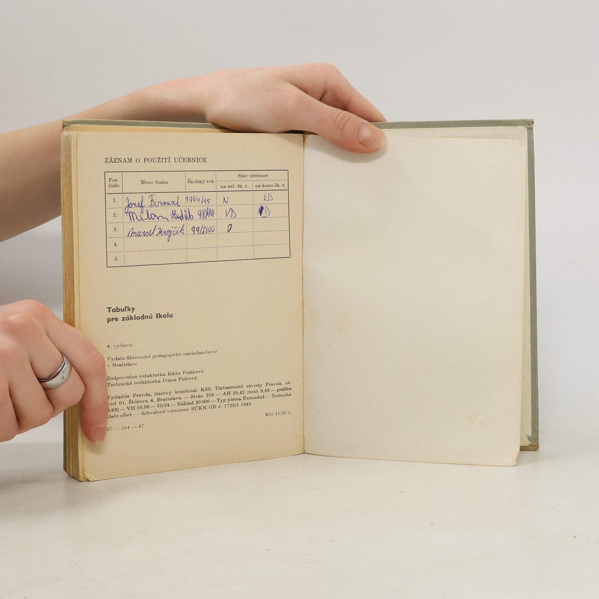 Tabuľky pre základnú školu, Autores varios