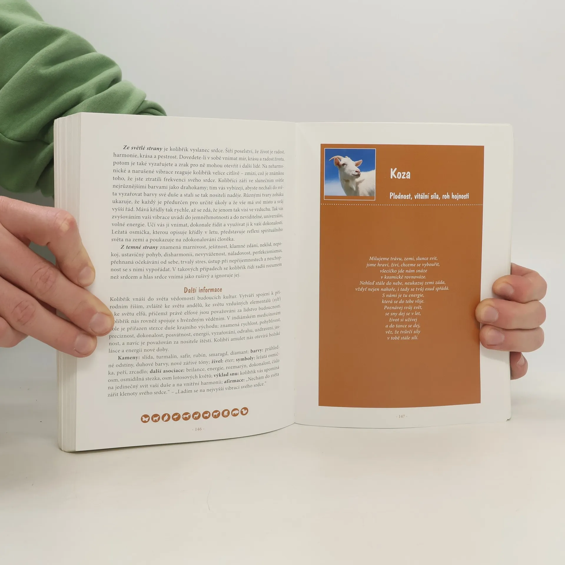 Některá zvířata nás provázejí po celý život, jiná nám pomáhají pouze v určitých situacích. Existují zvířata duchovní a zvířata pomocná. Duchovní (silová) zvířata symbolizují určitou sílu, jako například trpělivost, píli, bdělost, ta pomocná zase upozorňují na konkrétní záležitosti v našem životě. Autorka dává návod, jak nalézt své duchovní zvíře a jak interpretovat jeho poselství, a poté popisuje sto čtyřicet zvířat a jejich význam.