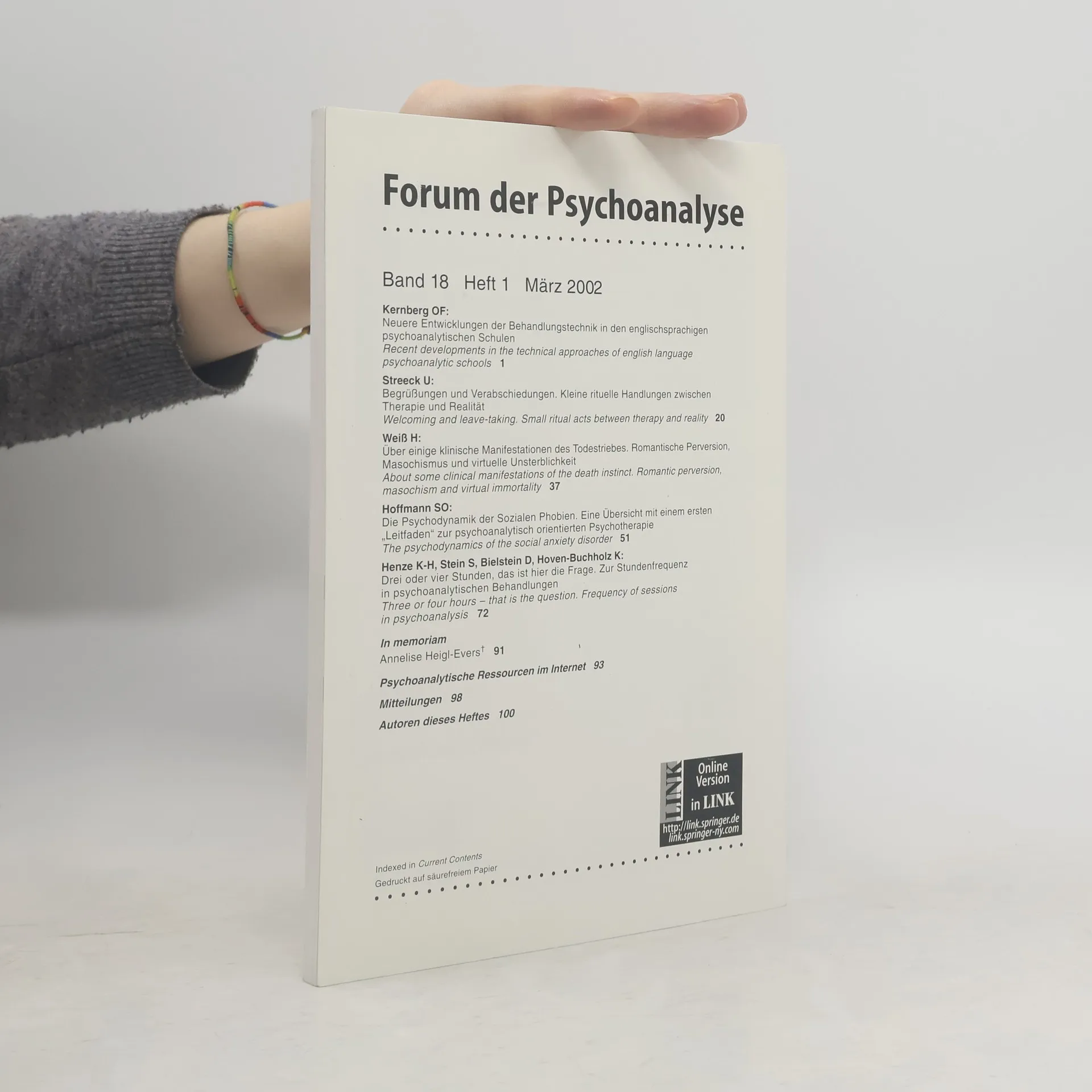 Forum der Psychoanalyse 2002. Band 18. Heft 1, Autores varios