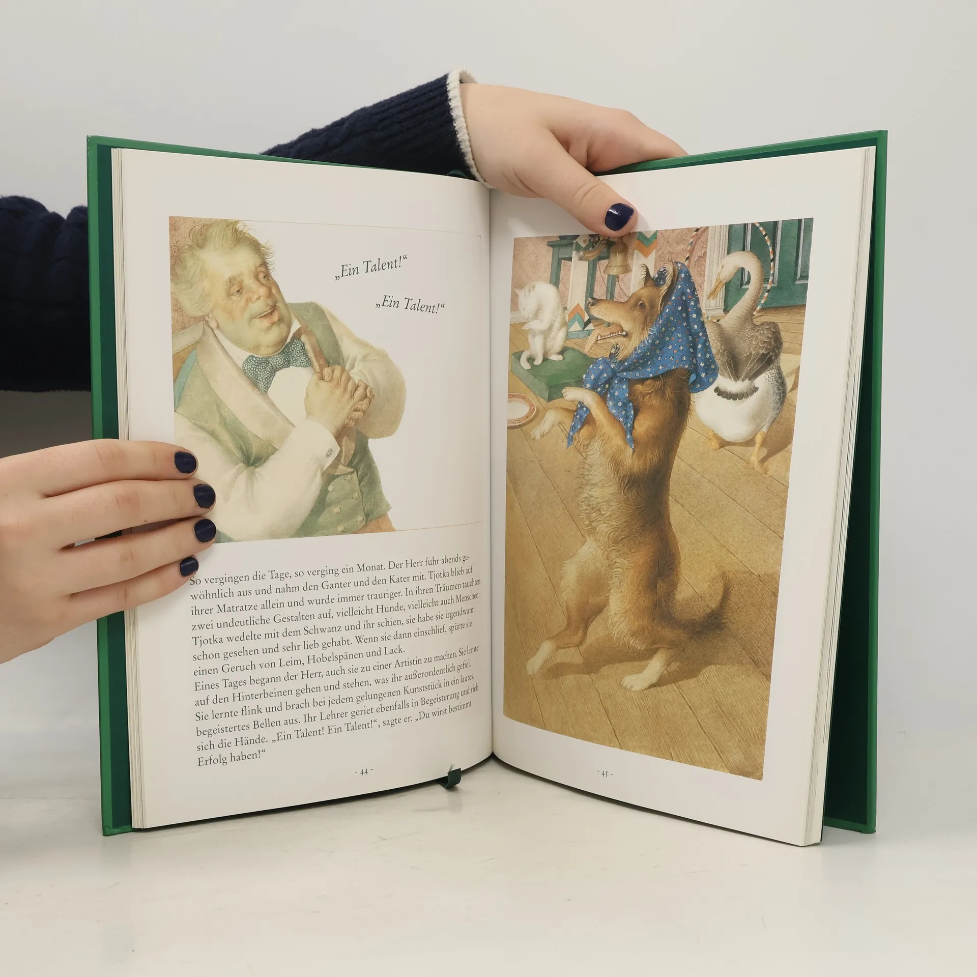 Der vorliegende Band ist kein Märchenbuch, sondern enthält 4 Erzählungen der klassischen russischen Literatur, von S. Gräfin Schönfeldt wunderschön nacherzählt, von G. Spirin prachtvoll illustriert und auf der beiliegenden CD von P. Schindler musikalisch "illustriert". Die enthaltenen Erzählungen mit den gleichen Illustrationen waren alle schon als Einzeltitel erschienen (vgl. N. Gogol: "Der Jahrmarkt von Sorotschinzy", BA 12/90; A. Tschechow: "Kaschtanka", BA 10/94; N. Gogol: "Die Nase", ID 51/92; A. Puschkin: "Das Märchen vom Zaren Saltan", BA 3/96) sowie auch als Sammelband "Märchen-Samowar" (BA 9/97). Neu ist die beigefügte CD, auf der R. Weiser einfühlsam, doch ohne Pathos, die sehr unterschiedlichen Erzählungen liest und dabei durch Musik von P. Schindler begleitet wird, die mit Anklängen an russische Folklore ein reizvolles Stimmungsbild schafft. Wie schon bei dem 1. Titel unter dem Label "tonART" bei Esslinger "Wintermärchen" von H.C. Andersen (BA 1/08) ein Hörgenuss. Finanzstarken Bibliotheken uneingeschränkte Empfehlung, wenn die Vorauflagen nicht vorhanden sind. . - Die Märchensammlung enhält: "Der Jahrmarkt von Sorotschinzy", "Die Nase" von N. Gogol, "Kaschtanka" von A Tschechow und "Das Märchen vom Zaren Zaltan" von A. Puschkin mit Illustrationen von G. Spirin und einer musikalisch unterlegten Lesung auf beiliegender CD