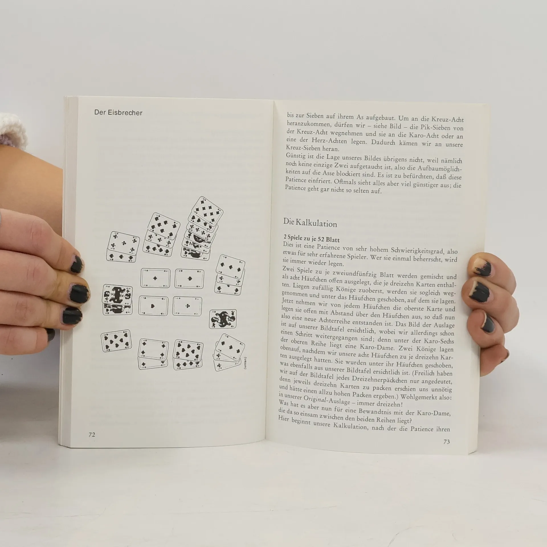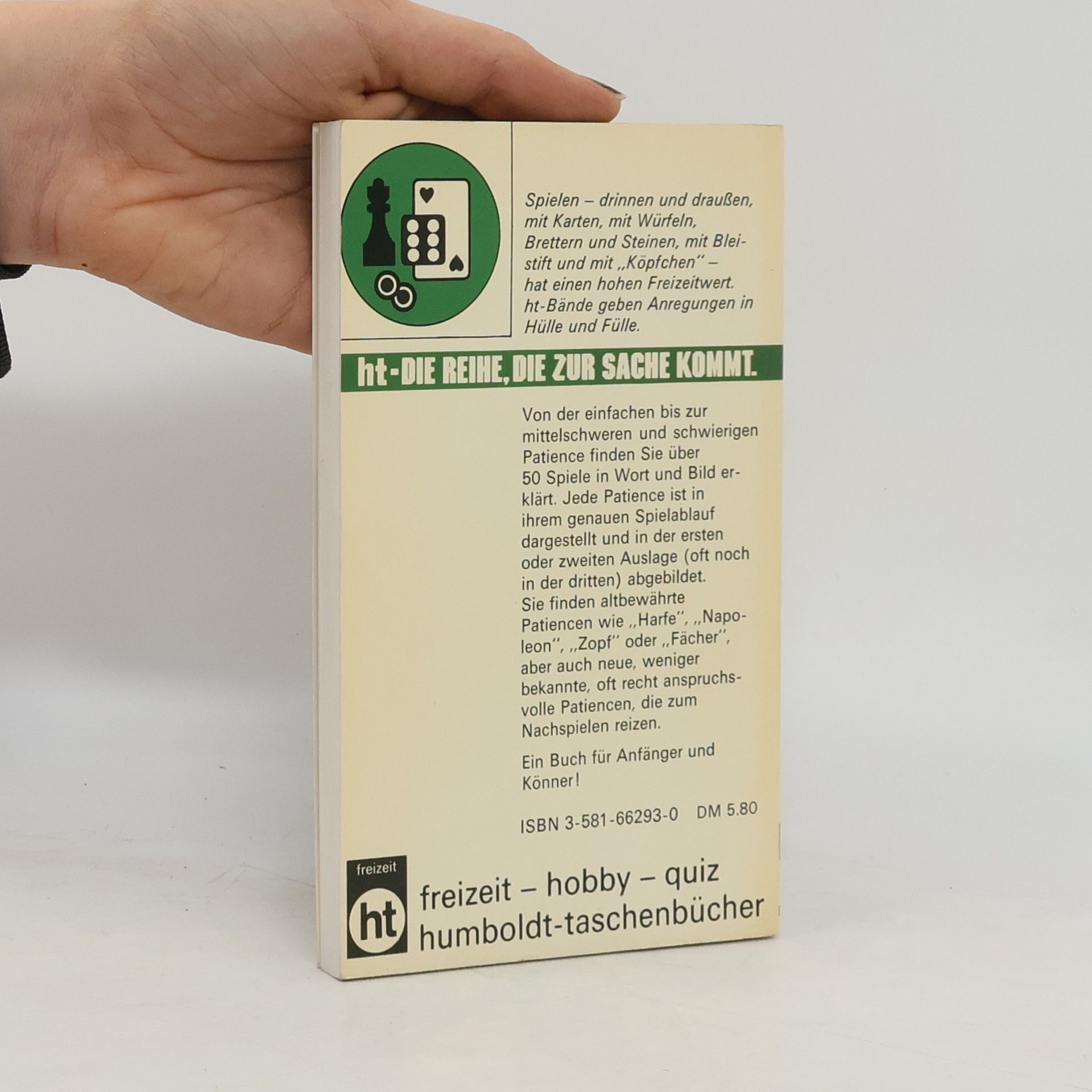 Patiencen legen – ein „klassisches“ Kartenspiel, das sich wieder steigender Beleibtheit erfreut! In diesem Buch werden rund 50 der schönsten Varianten vorgestellt: Von einfachen Patiencen wie „Hochzeit“ oder „Das Viereck“ über mittelschwere bis schwierige Patiencen („Rangierbahnhof“, „Zopf“, „Der große Napoleon“) bis zu Patiencen für 2 Personen („Max und Moritz“, Zankpatience“) finden Sie alte und neue Varianten, weniger bekannte und oft recht anspruchsvolle. Das ganze faszinierende Universum dieses beliebten Kartenspiels wird in diesem praktischen Buch vorgestellt! Jede Patience ist in ihrem genauen Spielablauf dargestellt und in der ersten oder zweiten Auslage (oft noch in der dritten) abgebildet. Dieses Buch ist geeignet für Anfänger und Fortgeschrittene. Mit vielen Abbildungen, Beispielen, Aufgaben und Lösungen. Irmgard Wolter ist eine erfolgreiche Sachbuch-Autorin im Bereich Freizeit und Hobby, besonders auch für Kartenspiele. Mit Patiencen hat sie sich seit vielen Jahren intensiv beschäftigt und viele schöne Varianten gesammelt.