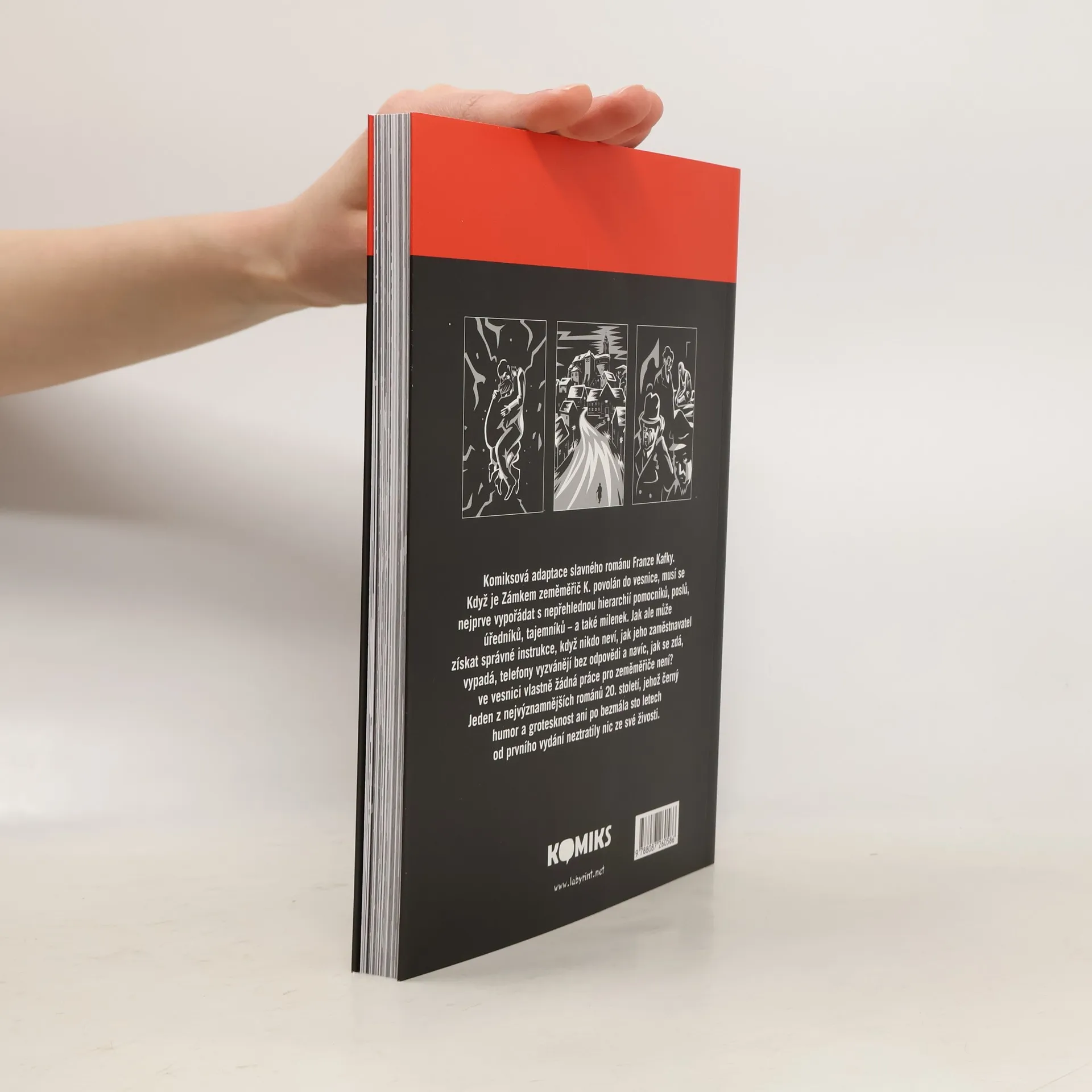 Komiksová adaptace slavného románu. Když je zeměměřič K. zámkem povolán do vesnice, musí se nejprve vypořádat s nepřehlednou hierarchií pomocníků, poslů, úředníků, tajemníků - a také milenek. Jak ale může získat správné instrukce, když nikdo neví, jak jeho zaměstnavatel vypadá, telefony vyzvánějí bez odpovědi a navíc, jak se zdá, ve vesnici vlastně žádná práce pro zeměměřiče není? Jeden z nejvýznamnějších románů 20. století, jehož černý humor a grotesknost ani po bezmála devadesáti letech od prvního vydání neztratily nic ze své živosti.