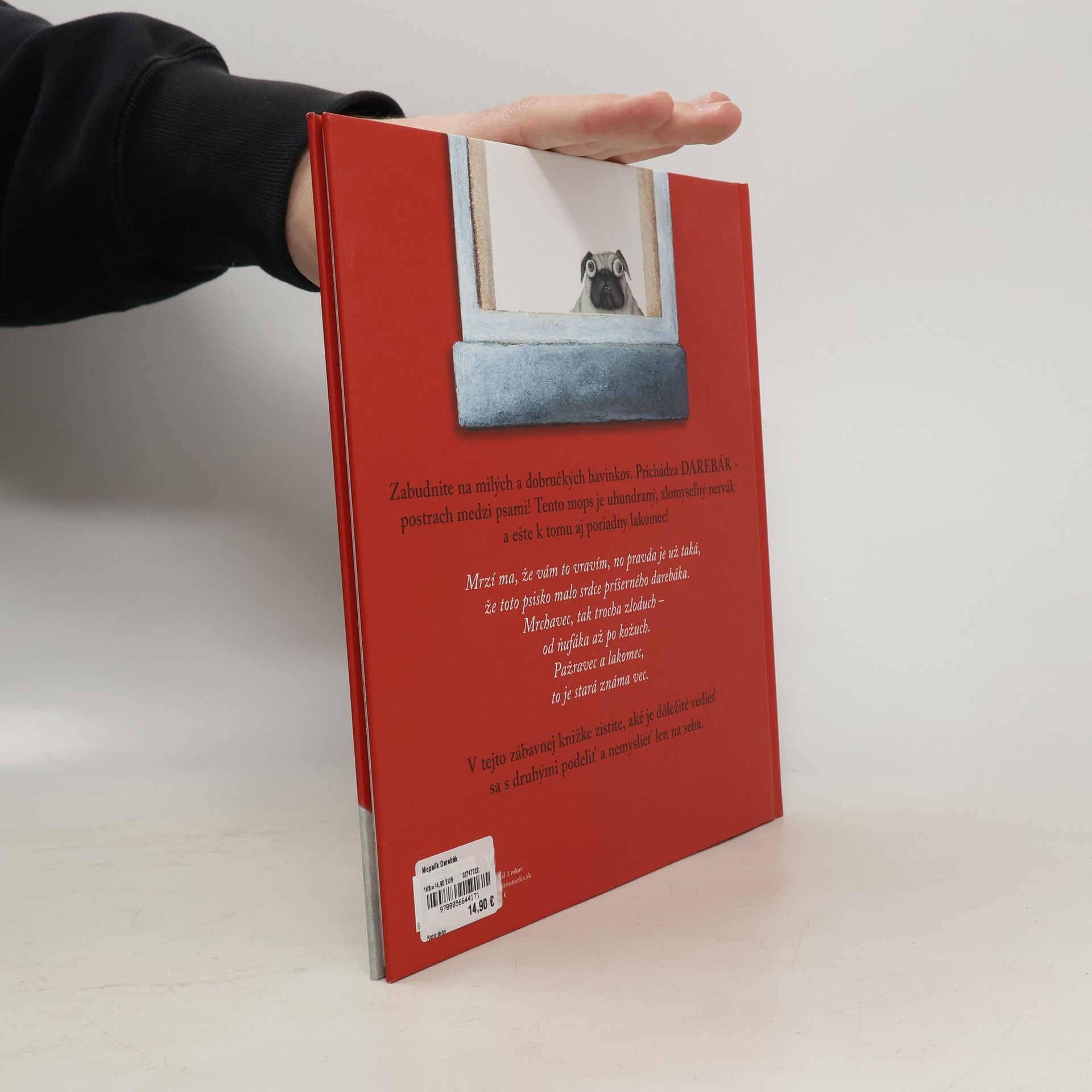 Zabudnite na milých a dobručkých havinkov. Prichádza Darebák - postrach medzi psami! Tento mops je uhundraný, zlomyseľný, nervák a ešte k tomu aj poriadny lakomec! Mrzí ma, že vám to vravím, no pravda je už taká, že toto psisko malo srdce príšerného darebáka. Mrchavec, tak trocha zloduch – od ňufáka až po kožuch. Pažravec a lakomec, to je stará, známa vec. V tejto zábavnej knižke zistíte, ako je dôležité vedieť sa s druhými podeliť a nemyslieť len na seba.