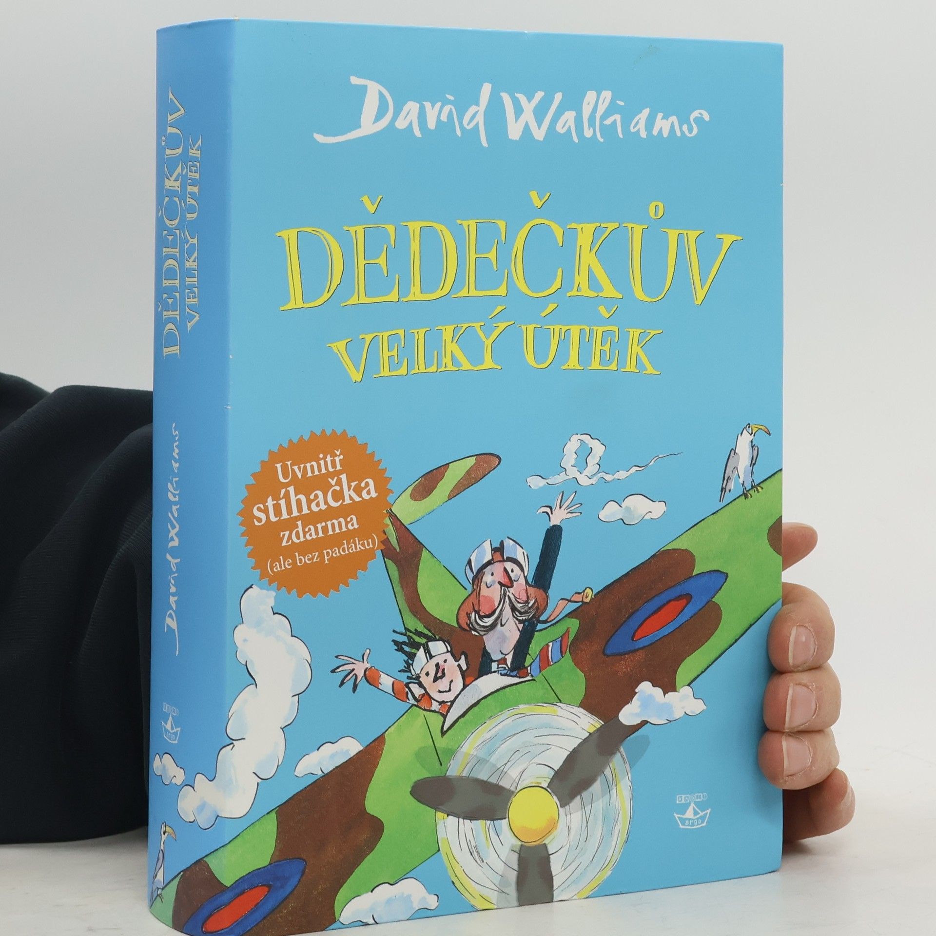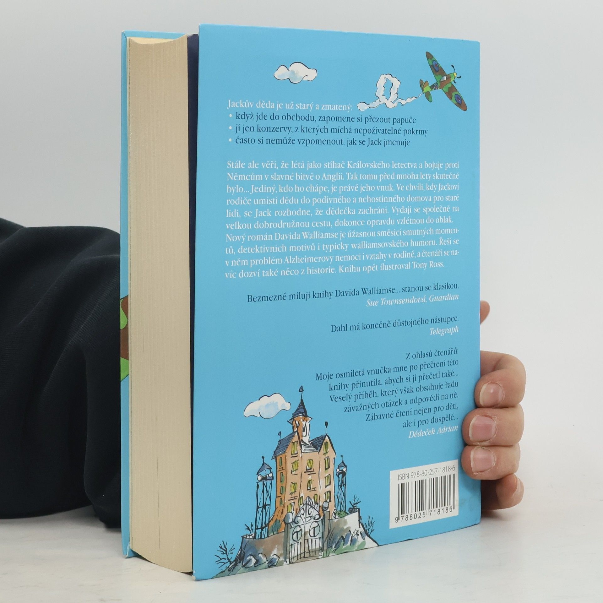 Jackův děda je už starý a zmatený: Když jde do obchodu, zapomene si přezout papuče. Jí jen konzervy, z kterých vytváří nepoživatelné míchanice. Často si nemůže vzpomenout, jak se Jack jmenuje. Stále ale věří, že létá jako stíhač Královského letectva a bojuje proti Němcům v slavné bitvě o Anglii. Tak tomu před mnoha lety skutečně bylo… Jediný, kdo ho chápe, je právě jeho vnuk. Ve chvíli, kdy Jackovi rodiče umístí dědu do podivného a nehostinného domova pro staré lidi, se Jack rozhodne, že dědečka zachrání. Vydají se společně na velkou dobrodružnou cestu, dokonce opravdu vzlétnou do oblak. Nový román Davida Walliamse je úžasnou směsicí smutných momentů, detektivních motivů i typicky walliamsovského humoru. Řeší se v něm problém Alzheimerovy nemoci, vztahy v rodině a čtenáři se navíc dozví i něco z historie. Knihu opět ilustroval Tony Ross.