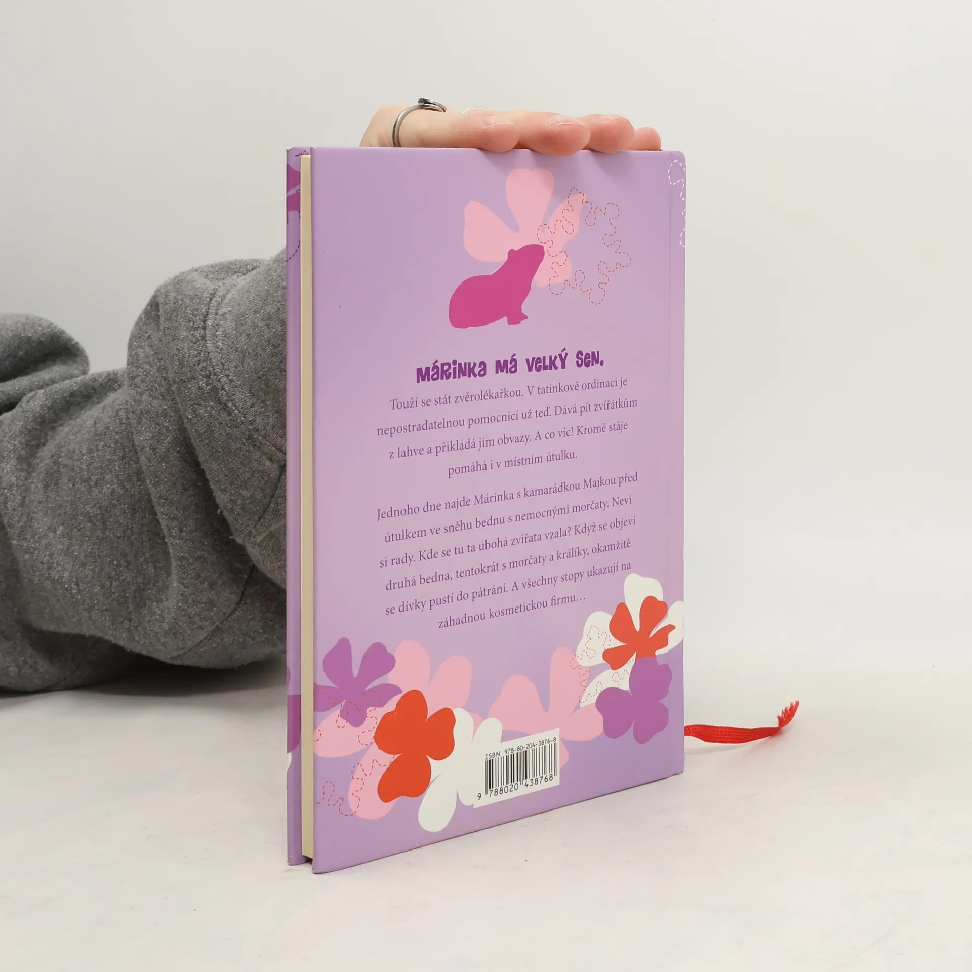 Márinka má velký sen. Touží se stát zvěrolékařkou. V tatínkově ordinaci je nepostradatelnou pomocnicí už teď. Dává pít zvířátkům z lahve, přikládá jim obvazy a měří teplotu. A co víc! Kromě stáje pomáhá i v místním útulku. Na vyjížďku na poníkovi Pepřence a na dobrodružství s kamarády si však čas udělá vždycky. Po jedné takové projížďce najde Márinka s kamarádkou Majkou před útulkem bednu s nemocnými morčaty. Neví si rady. Kde se tu ta ubohá zvířata vzala? Když se objeví druhá bedna, tentokrát s morčaty a králíky, okamžitě se pustí do pátrání. A všechny stopy ukazují na záhadnou kosmetickou firmu… První vydání.