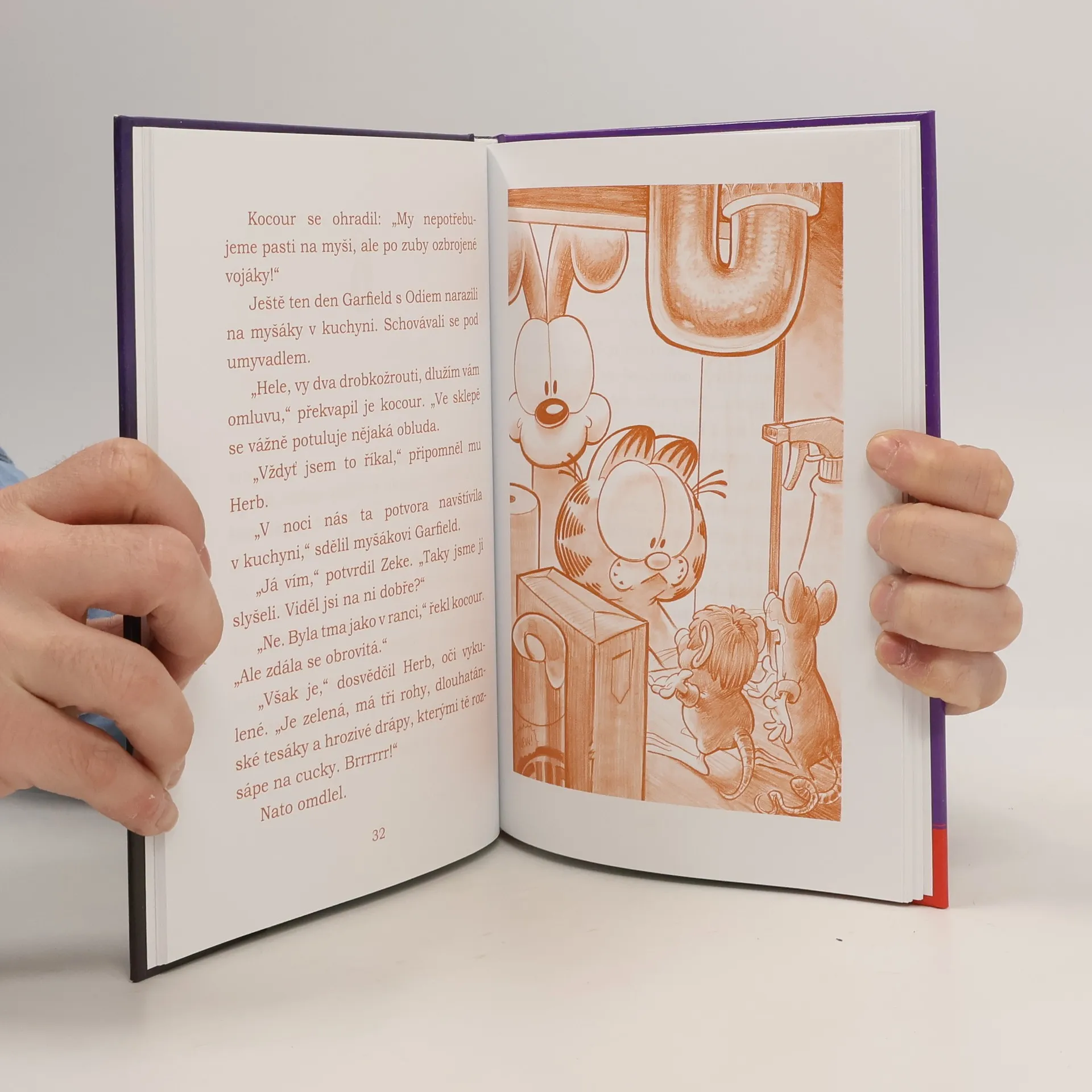 Oblíbený mlsný kocour Garfield a jeho věrný přítel pejsek Odie v příbězích plných humoru i napětí! Garfieldovi se rozklepou kolena, když mu Jon sdělí, že dokud nevyžene všechny myši z domu, nasadí mu přísnou dietu. Nedá se nic dělat, musí se překonat. Anebo se domluvit s myšákama, aby nevylézali ze sklepa… Jenže kdo tedy ukradl sýr? Může být něco pravdy na myších povídačkách o příšeře s velikými drápy?