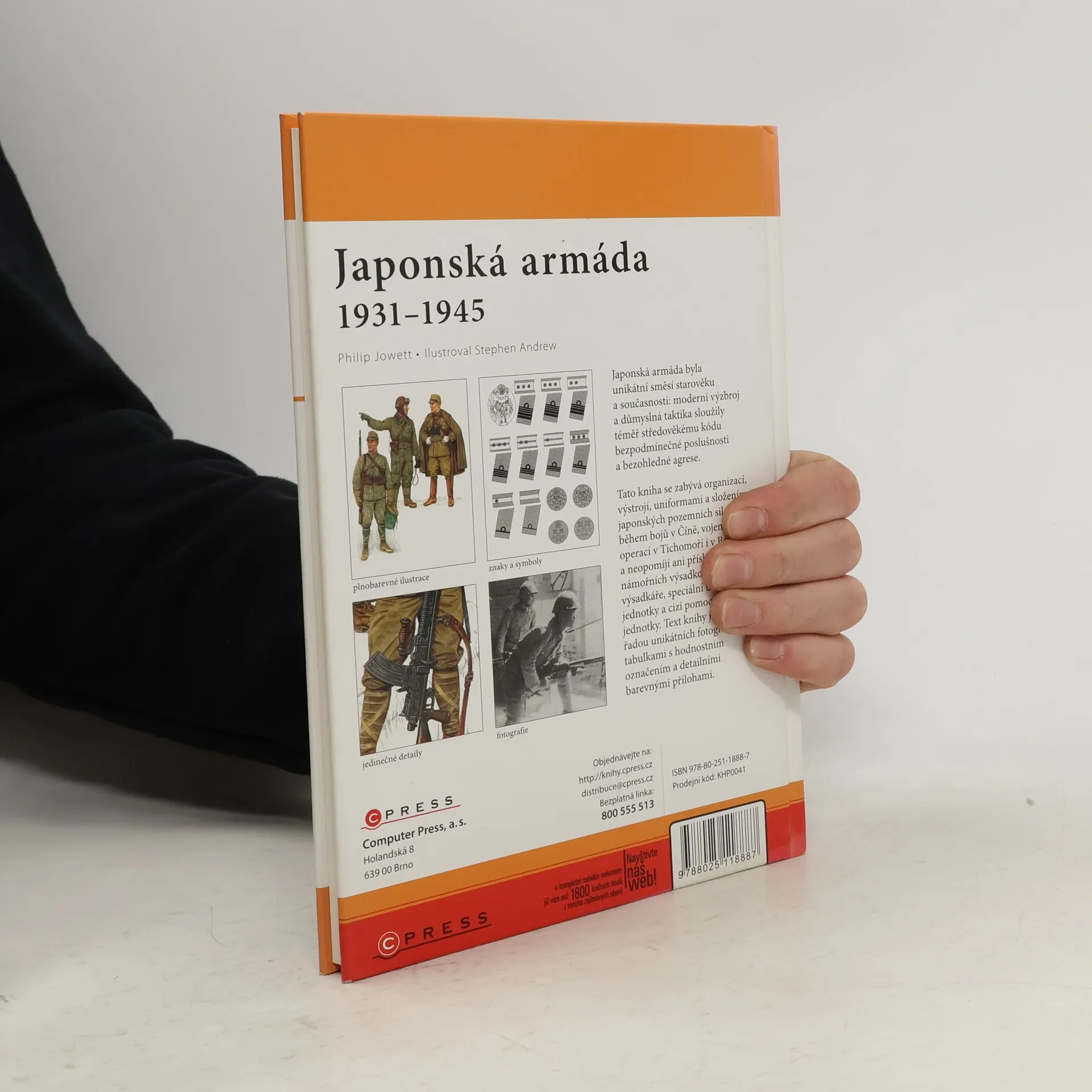 Japonská armáda byla unikátní směsí starověku a současnosti: moderní výzbroj a důmyslná taktika sloužila téměř středověkému kódu bezpodmínečné poslušnosti a bezohledné agrese. Tato publikace popisuje organizaci, výstroj, uniformy a složení japonských pozemních sil během bojů v Číně, Tichomoří i Barmě. Součástí knihy je schéma hodnostních označení, řada unikátních fotografií a 16 celobarevných příloh s přehledem uniforem.